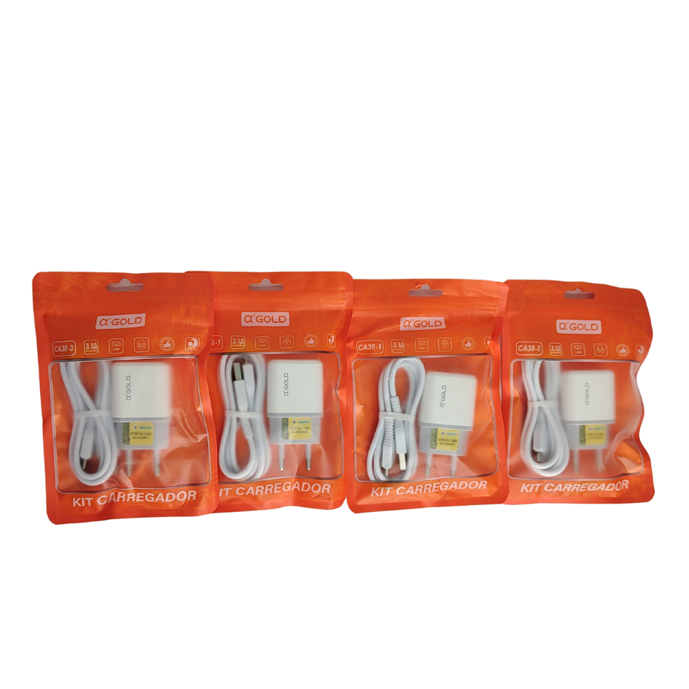 Kit 10pcs Carregador Turbo Micro USB V8 / Type C /Lightning Iphone Para Android 3.1A A'Gold