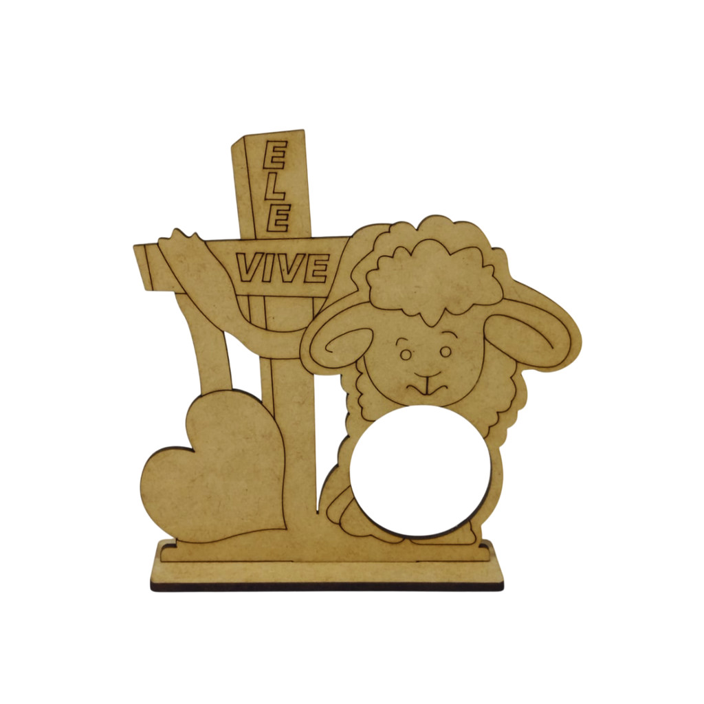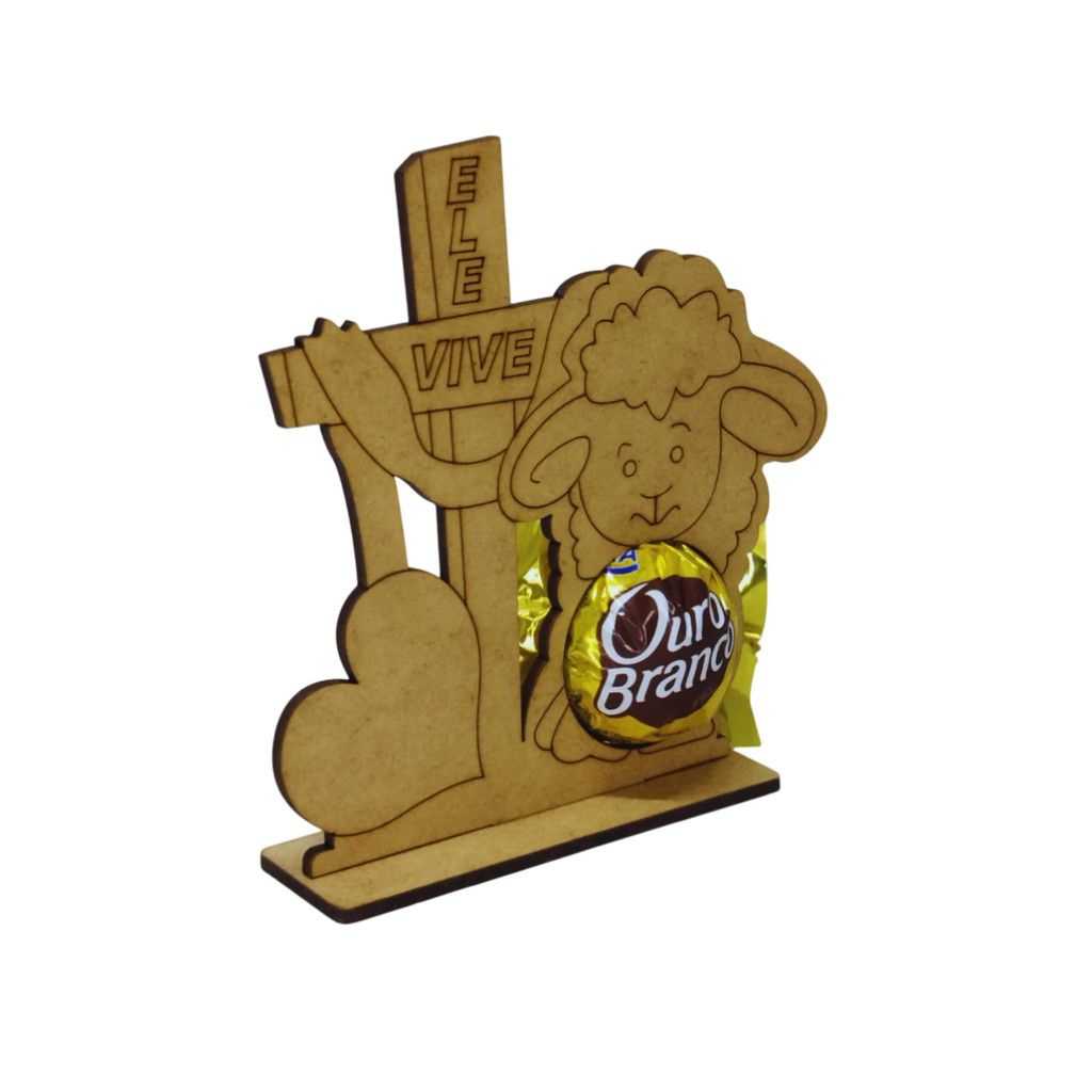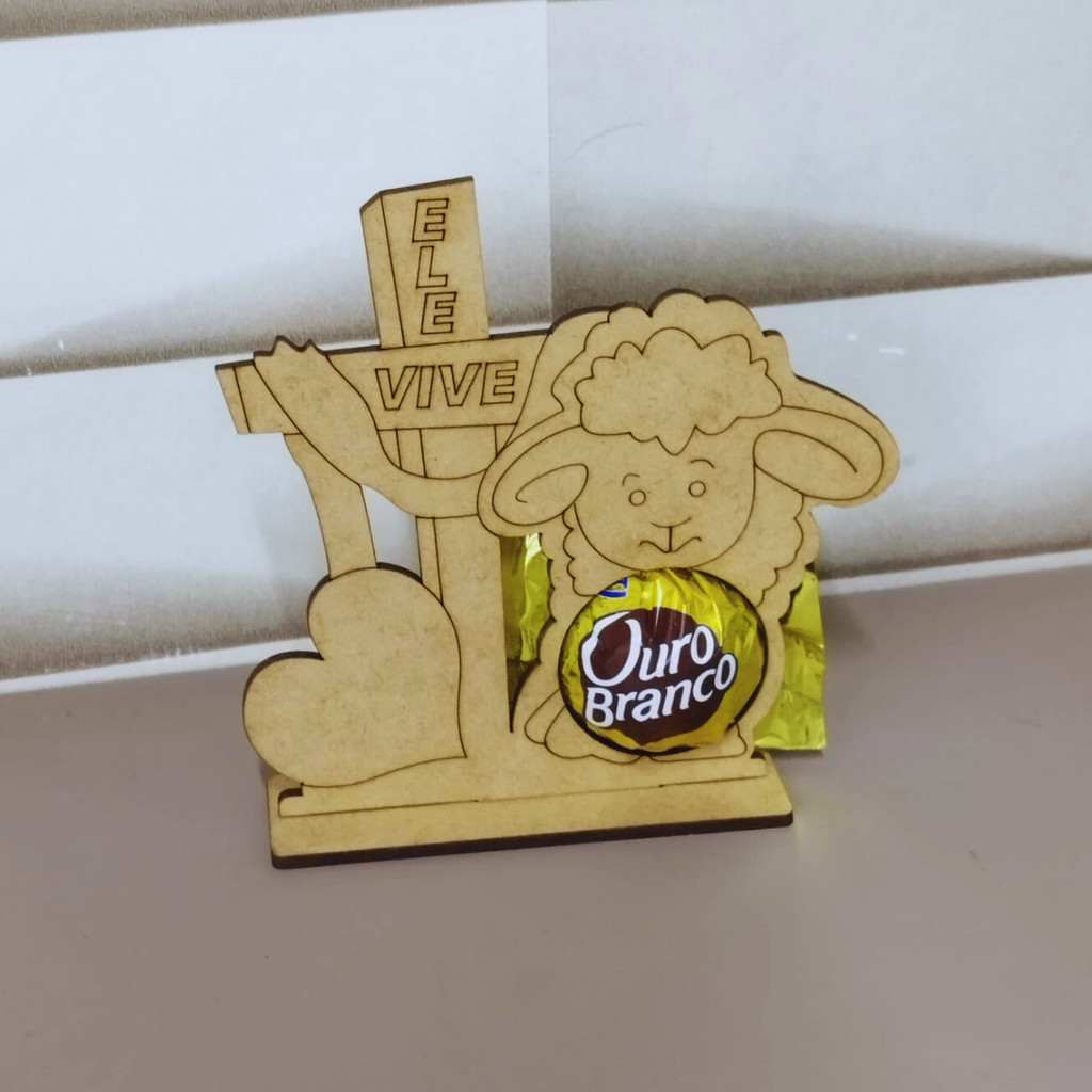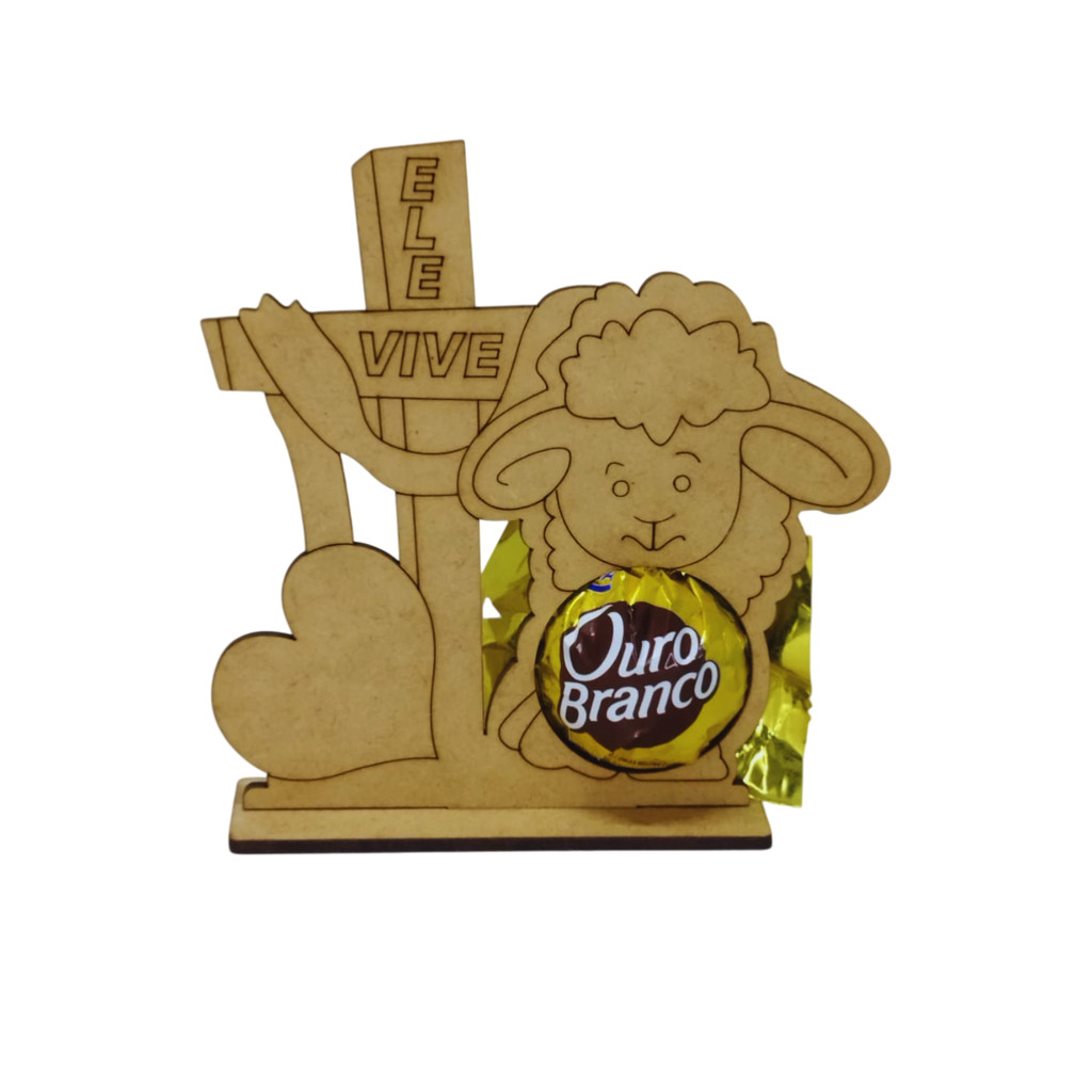 Kit 10und. Porta Bombom Lembrancinha Páscoa Ovelha Religioso - Ele Vive - MDF Cru