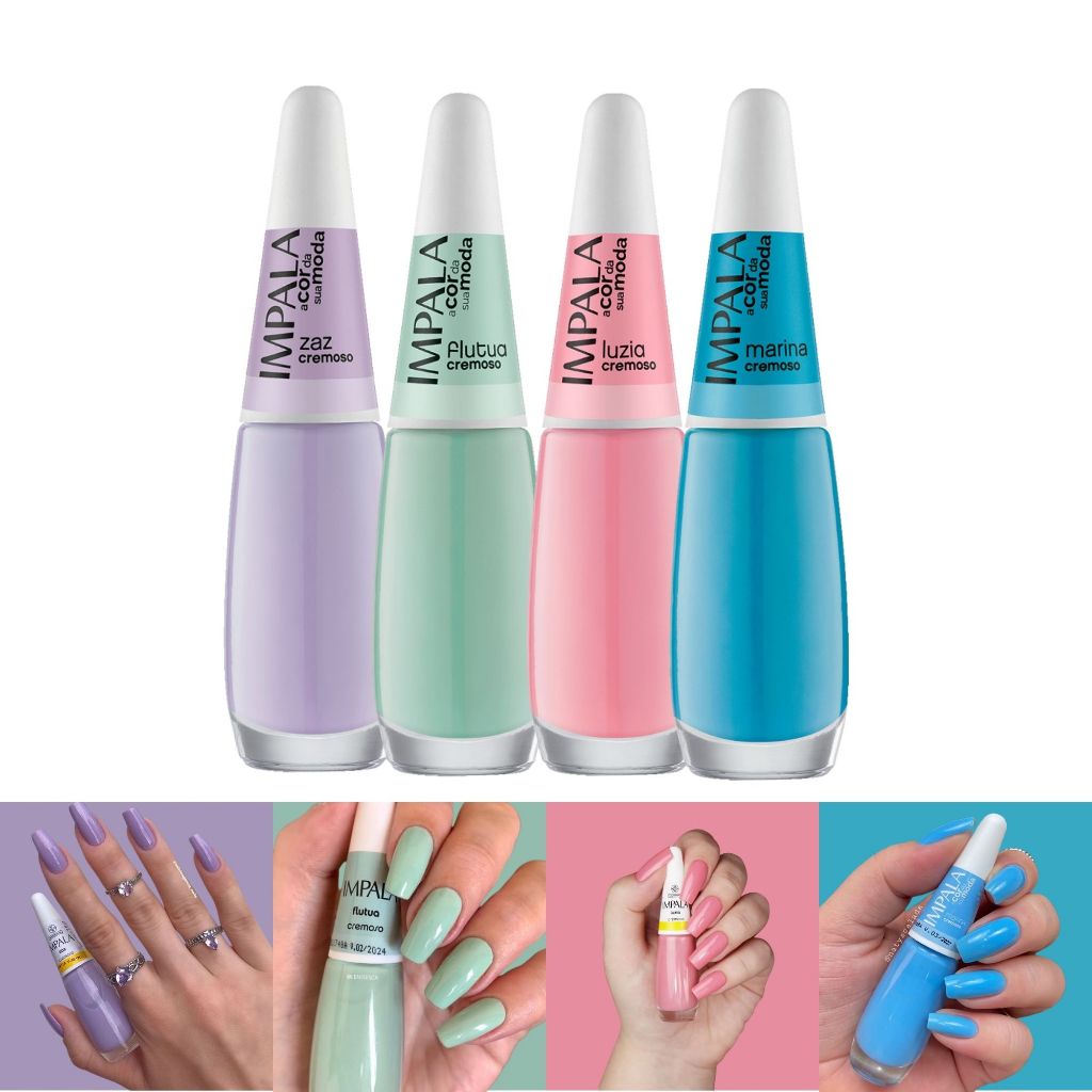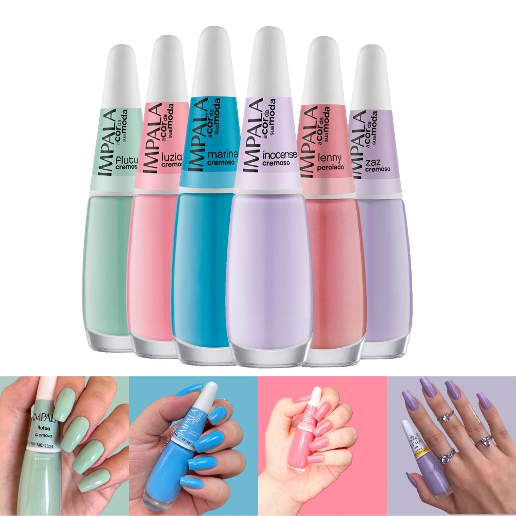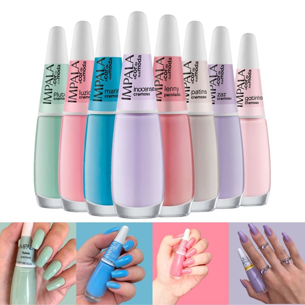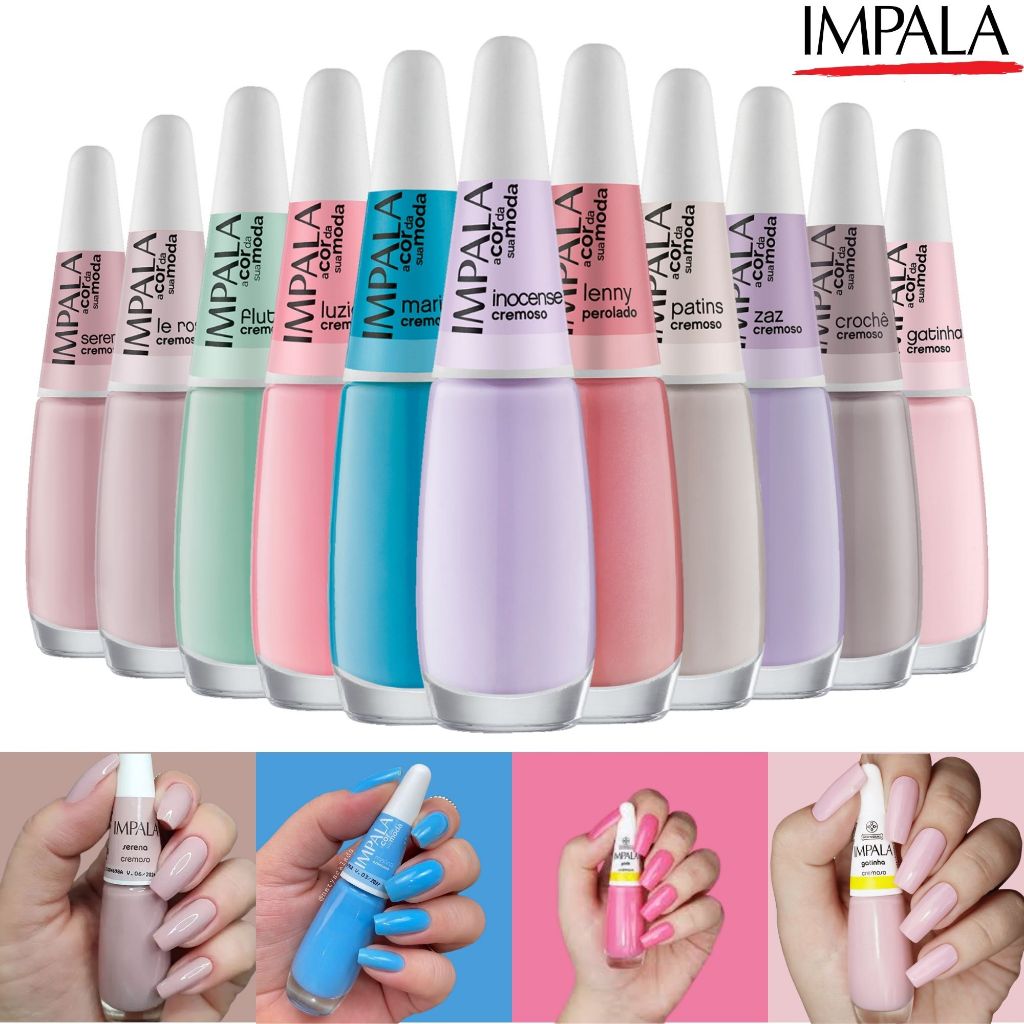 Kit 11 Esmalte Impala Tons Pasteis e Nude Cremoso Esmaltes Atacado