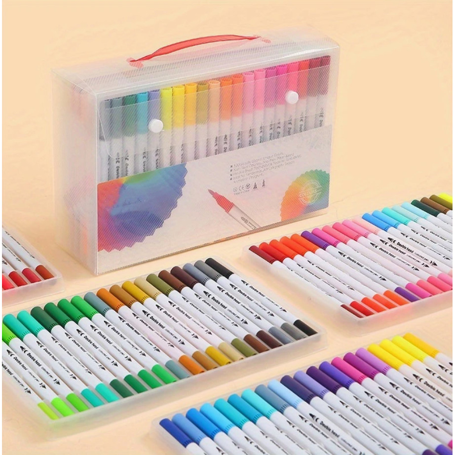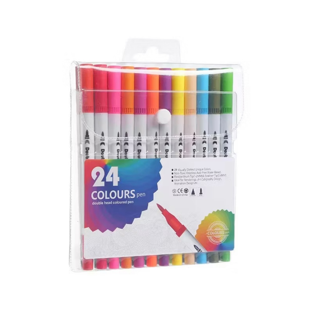 Kit 12/24/36/48 Cores Caneta 2 em 1 Brush Lettering e Ponta Fina Dual Pen Canetinha Colorir Desenho