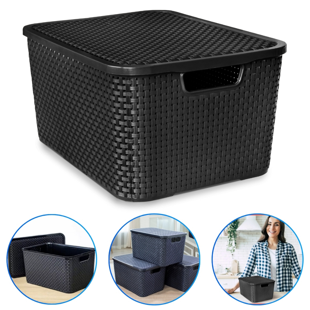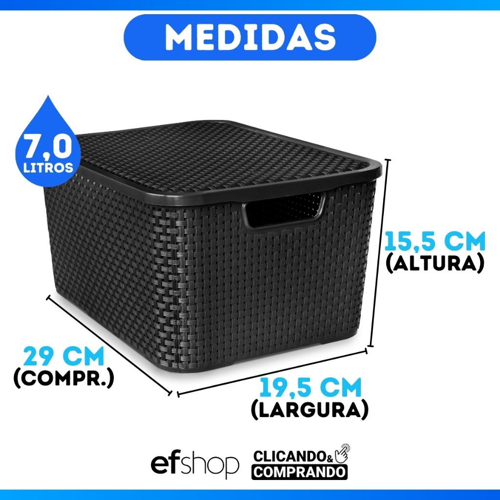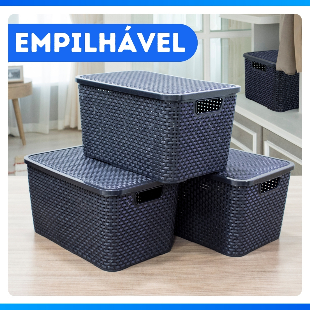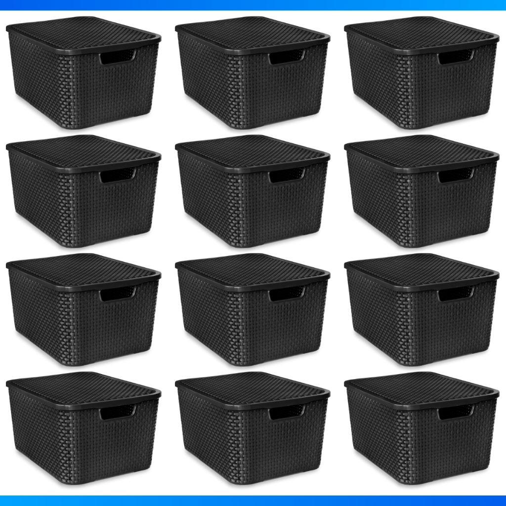 Kit 12 Caixa Organizadora Rattan Preto Com Tampa 7 Litros - OFERTA