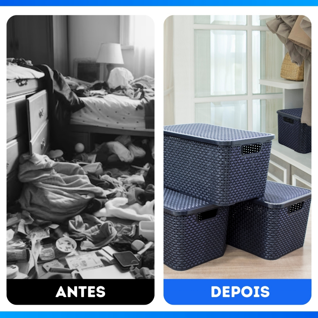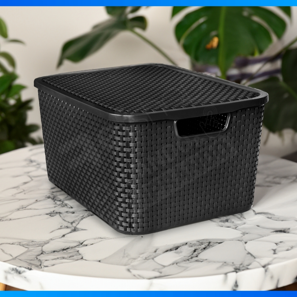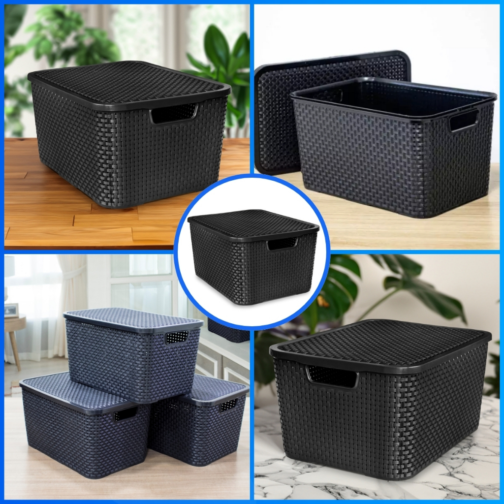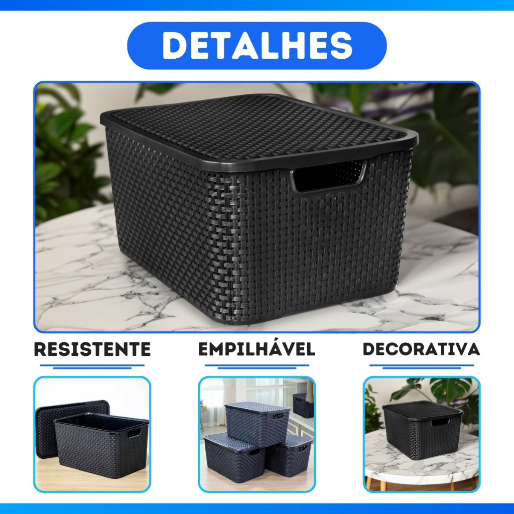 Kit 12 Caixa Organizadora Rattan Preto Com Tampa 7 Litros - OFERTA