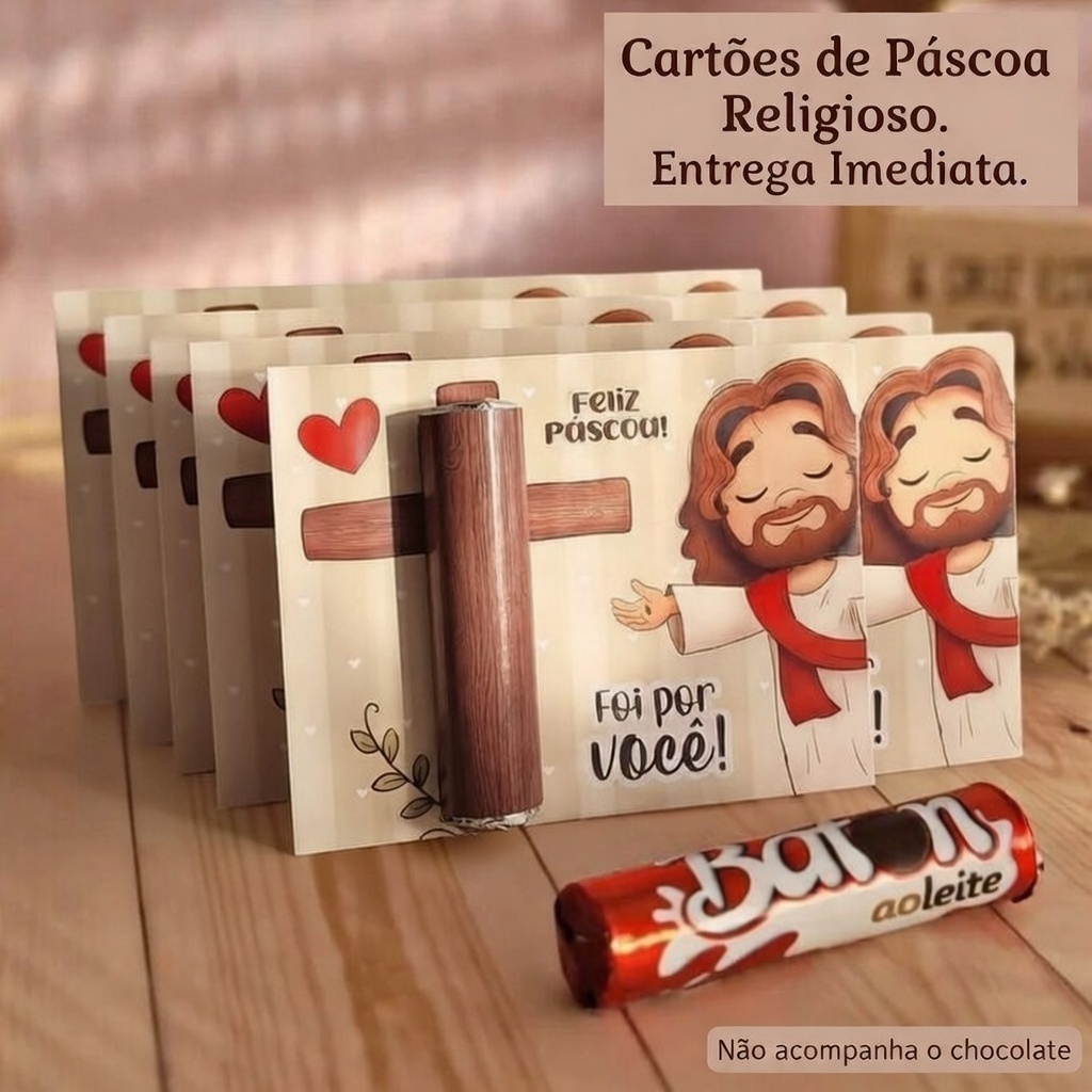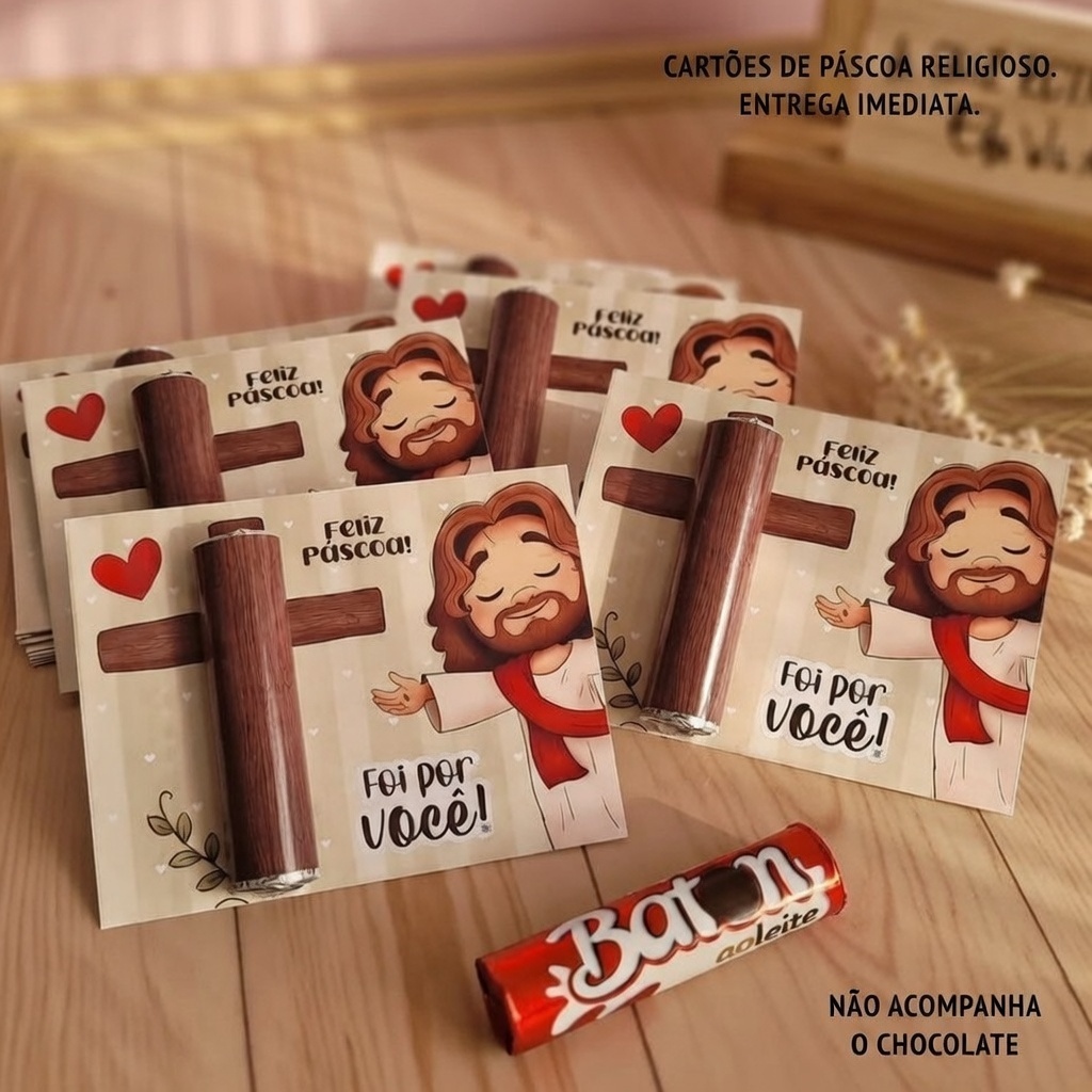 Kit 12 Cards Páscoa Cristã "Ele Vive": Mimo Especial para Lembrancinha de Igreja e Grupos de Oração ( SEM CHOCOLATE)