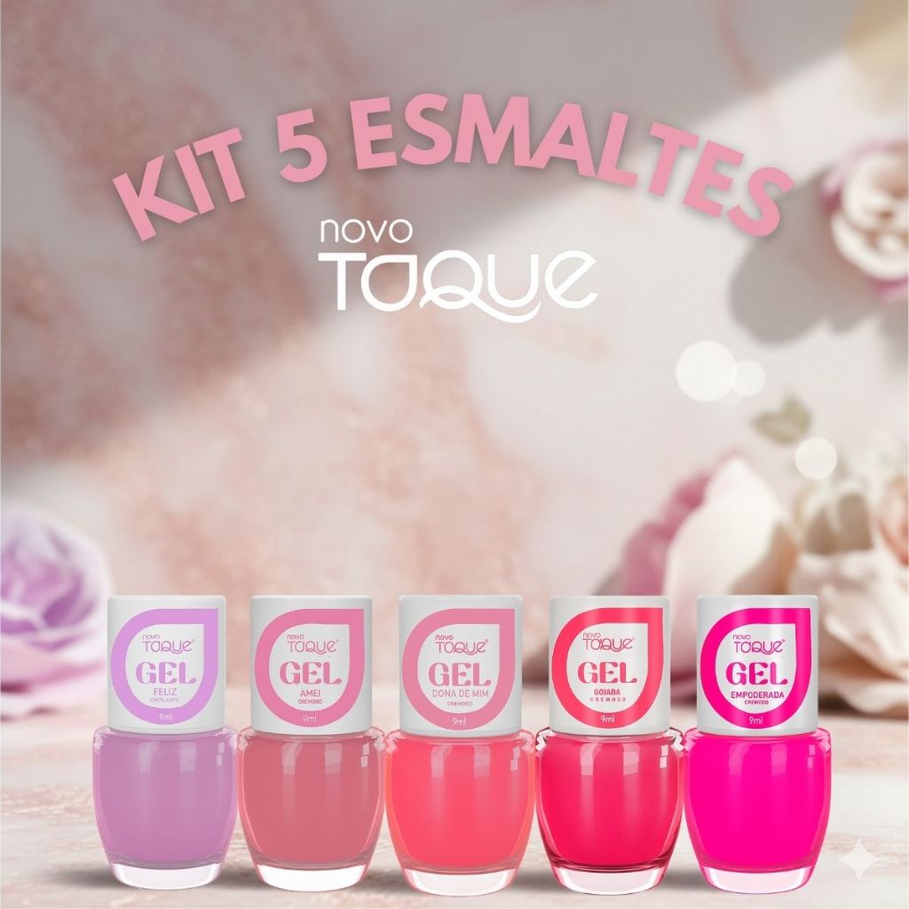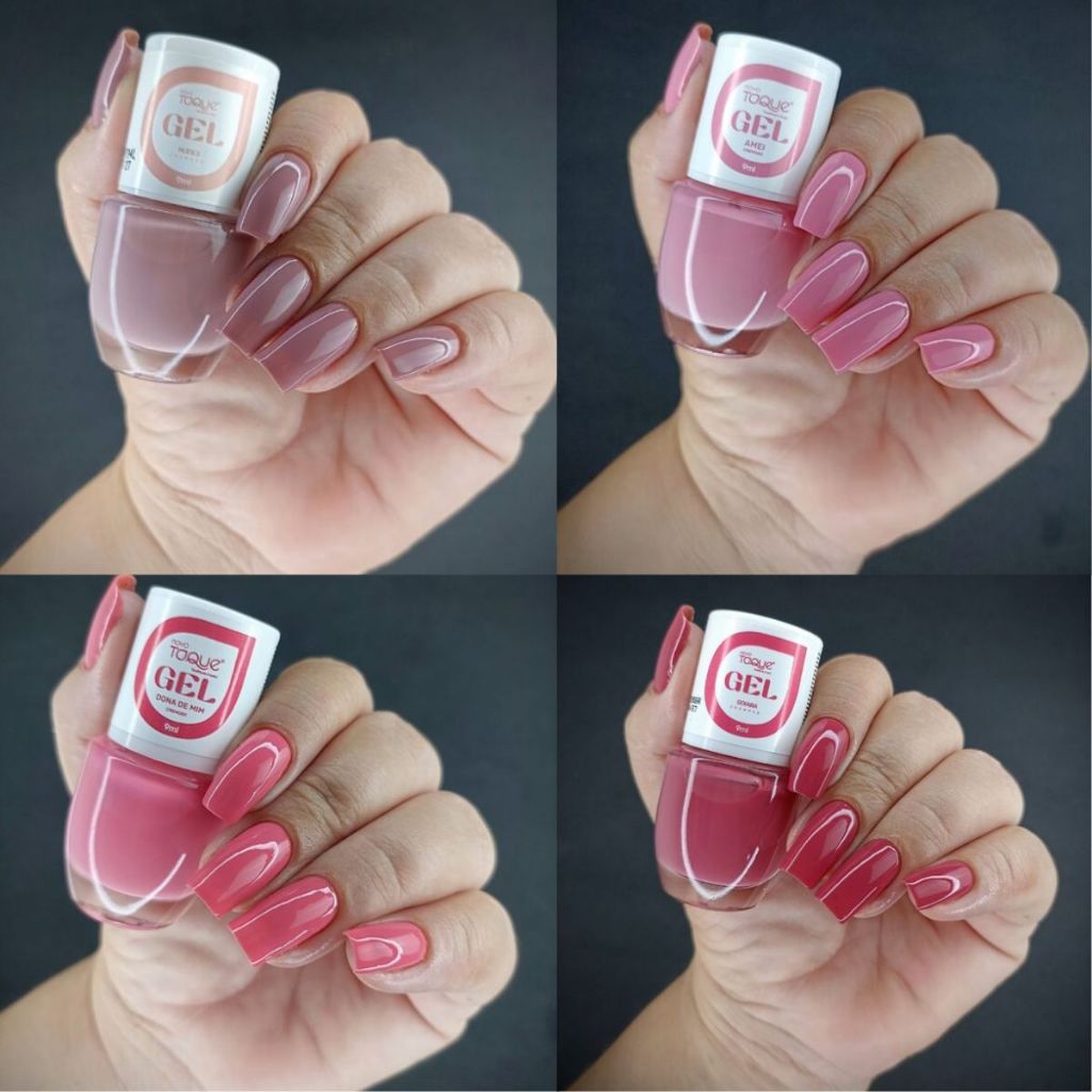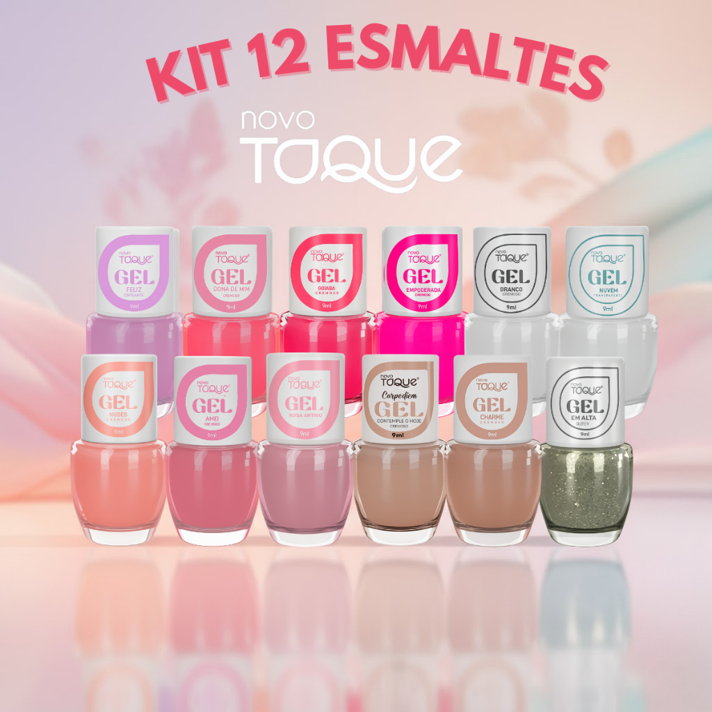 Kit 12 Esmaltes Novo Toque Efeito Gel Tons Rosas Delicados Nude Branco Madrinhas Tendências