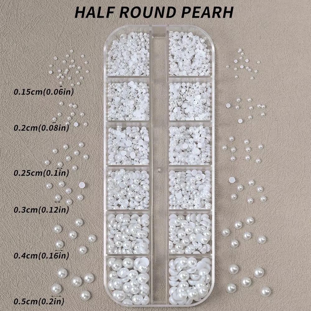 Kit-12 Grades 3D Pérolas Brancas para Unhas 1.5-5mm Meio-Redondas para Decoração de Unhas Acessórios para Manicure