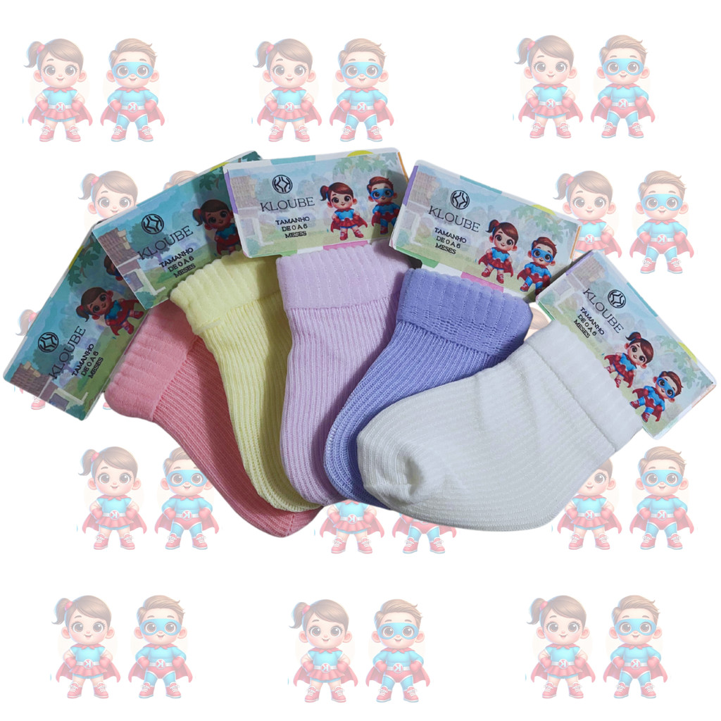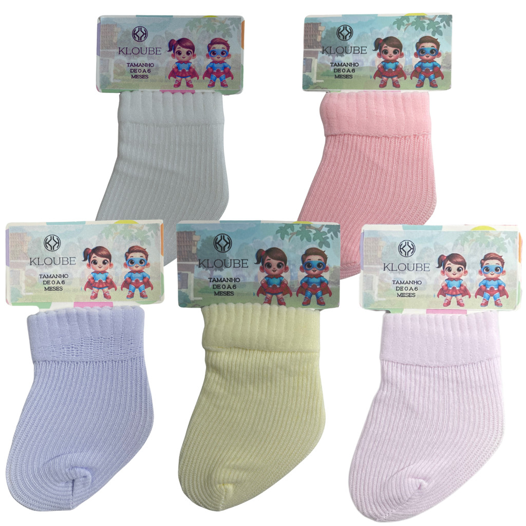 Kit 12 Pares de Meias para Bebê Recém Nascido - Saída de maternidade Sortidas - 0 a 06 meses