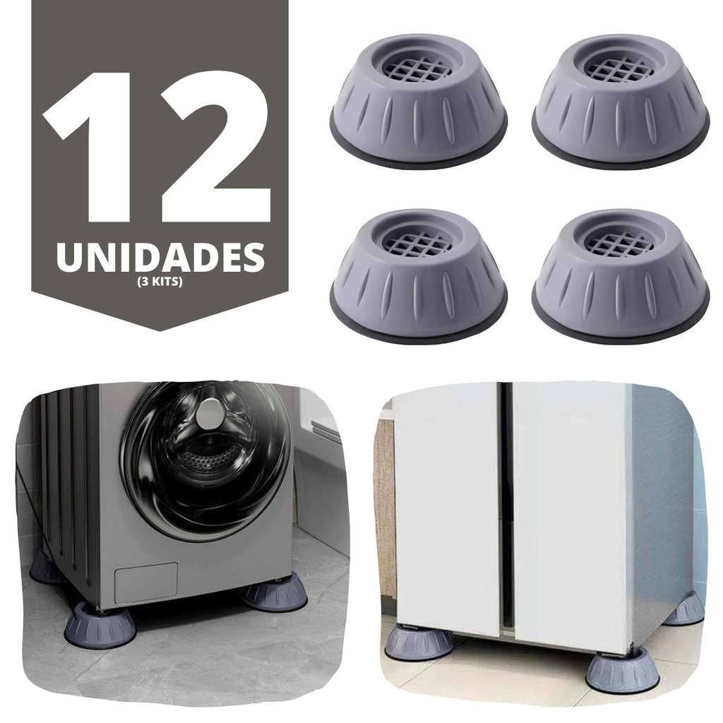 Kit 12 Peças de Suporte Para Máquina de Lavar - Almofadas de Borracha Anti Vibração e Niveladoras - WYL