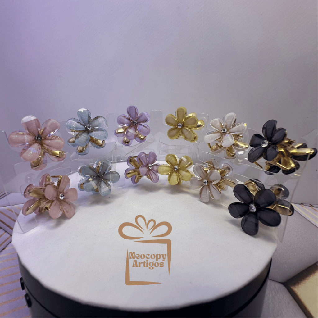 Kit 12 Piranhas Presilha Grampo de cabelo Flor Delicada Resinada Zircônia no centro estrutura Metal