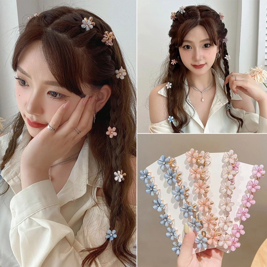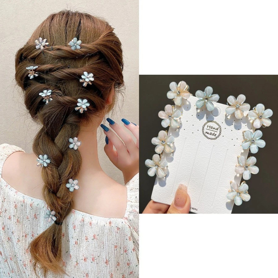 Kit 12 Piranhas /Presilhas Mini Flor Com Pérola/ Cristal e Strass – Grampos de Cabelo Decorativos Para Mulheres - WL
