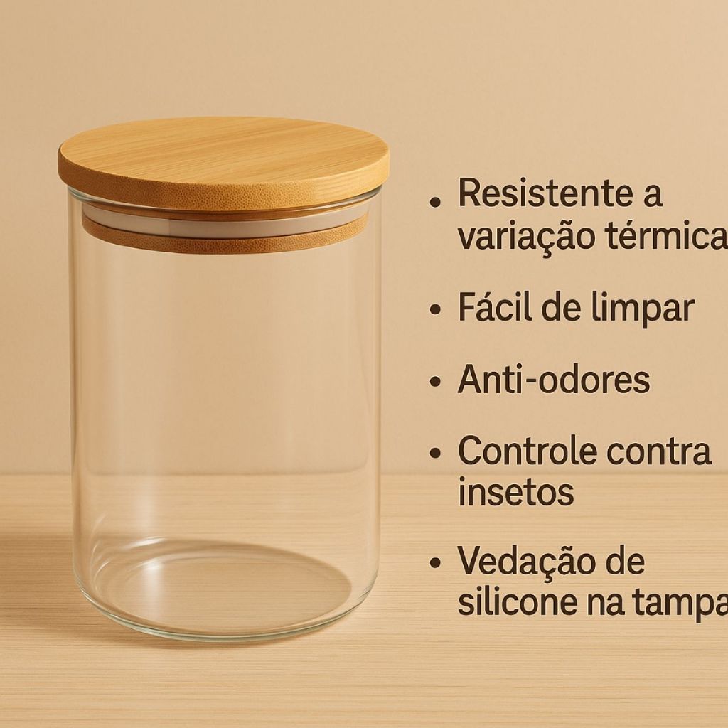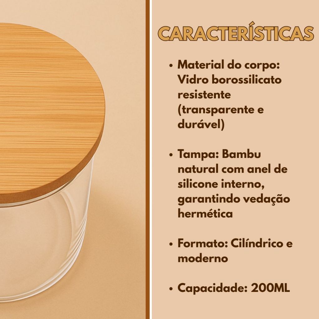 Kit 12 Potes de Vidro 200ml com Tampa de Bambu Hermético Mantimentos Condimentos Empilhaveis