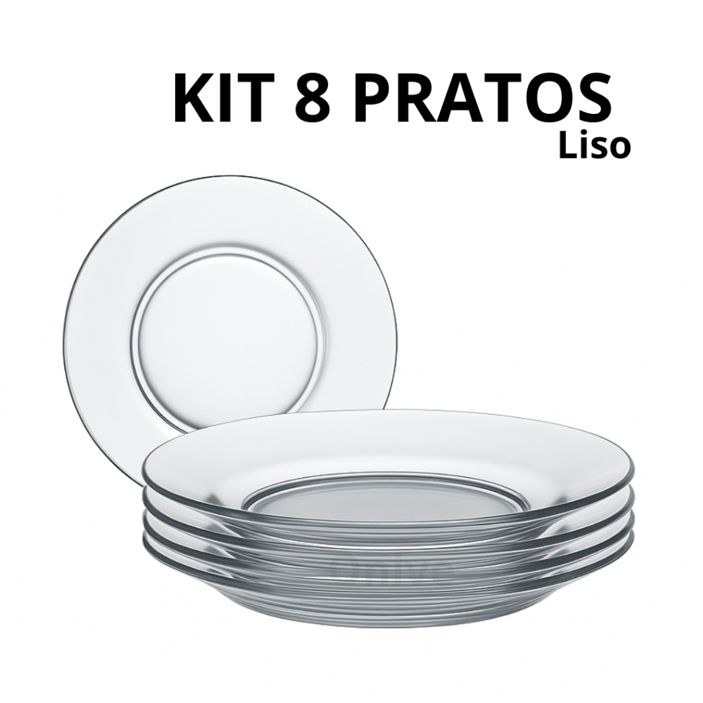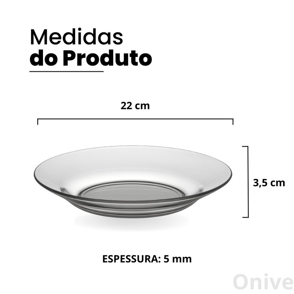 Conjunto De Até 12 Pratos Liso Fundo Transparente Resistente 22cm Kits 4, 8 ou 12 Unidades