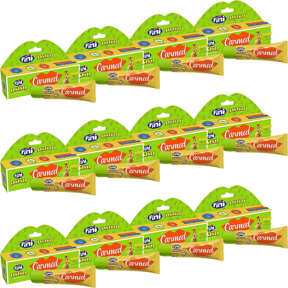 Kit 12 Unidades Hidratante Labial Carmed Fini Bananas Efeito Gloss 10g