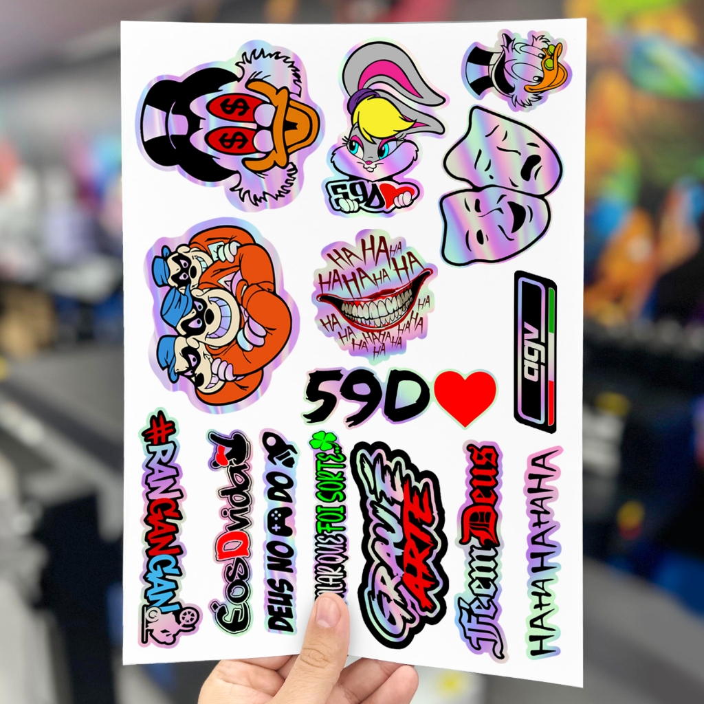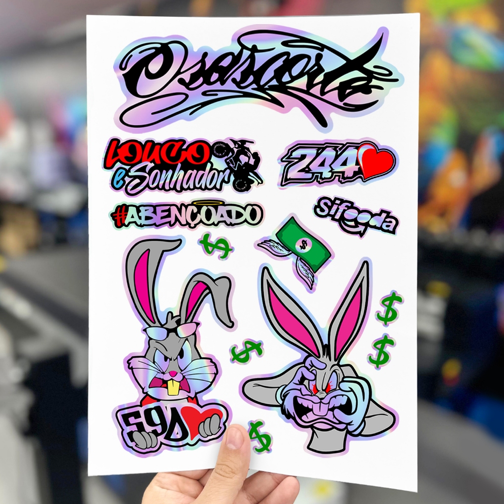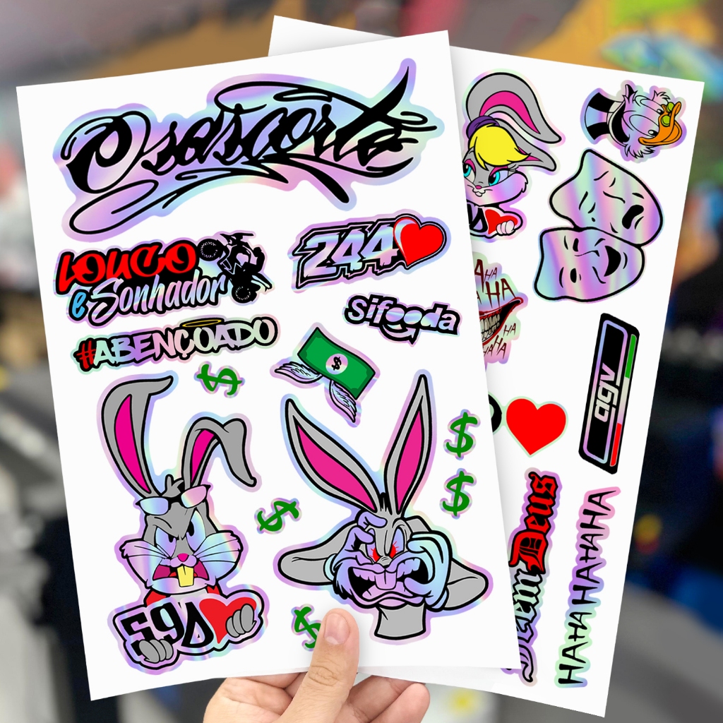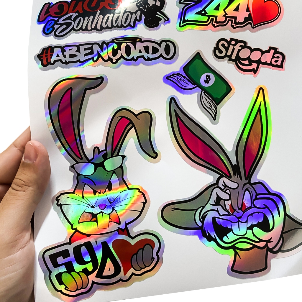 Kit 14 Adesivos Holografico Cartela Pernalonga 244 Osascorte Sonhador Moto Carro Capacete Camaleão