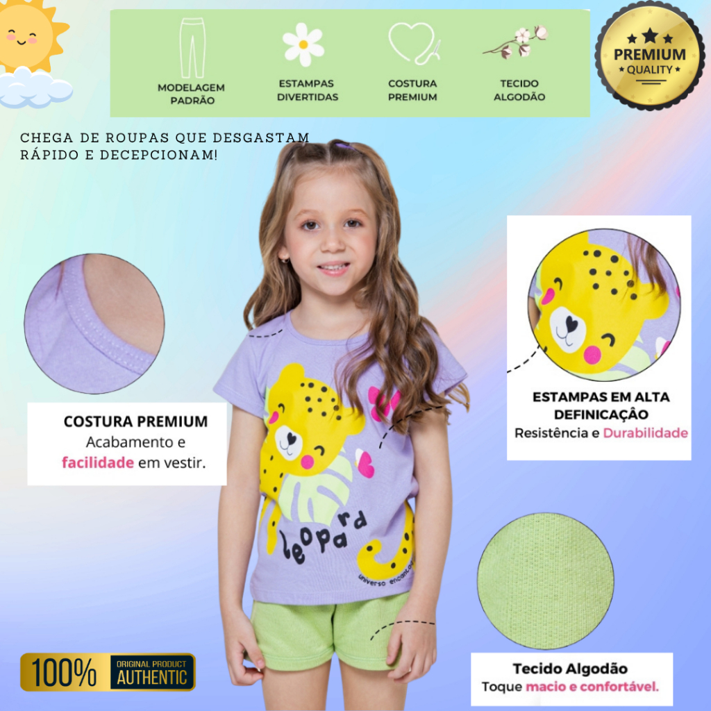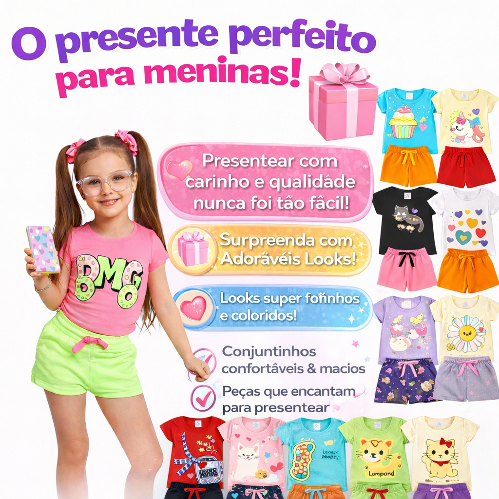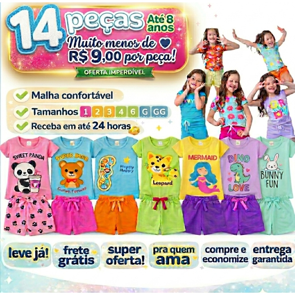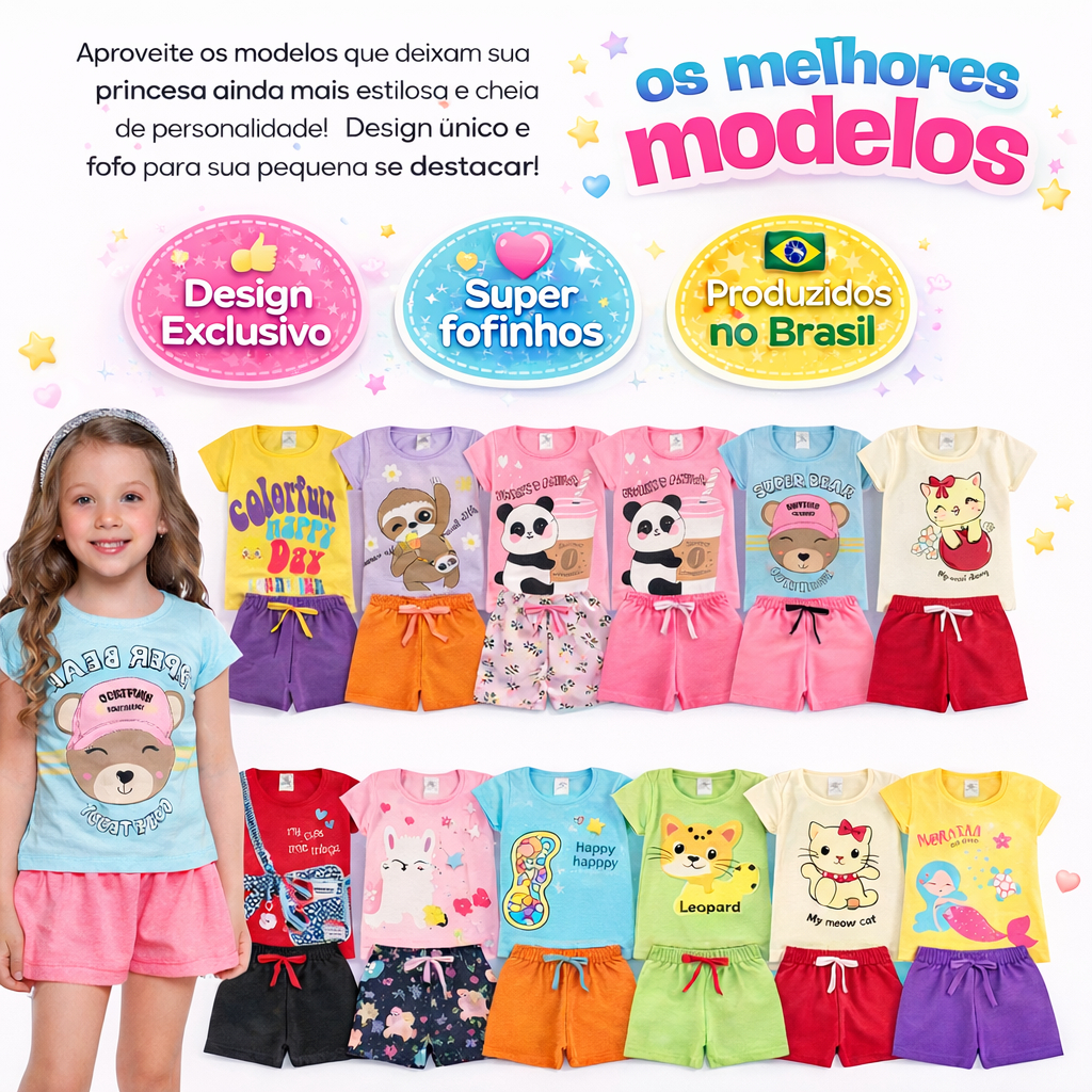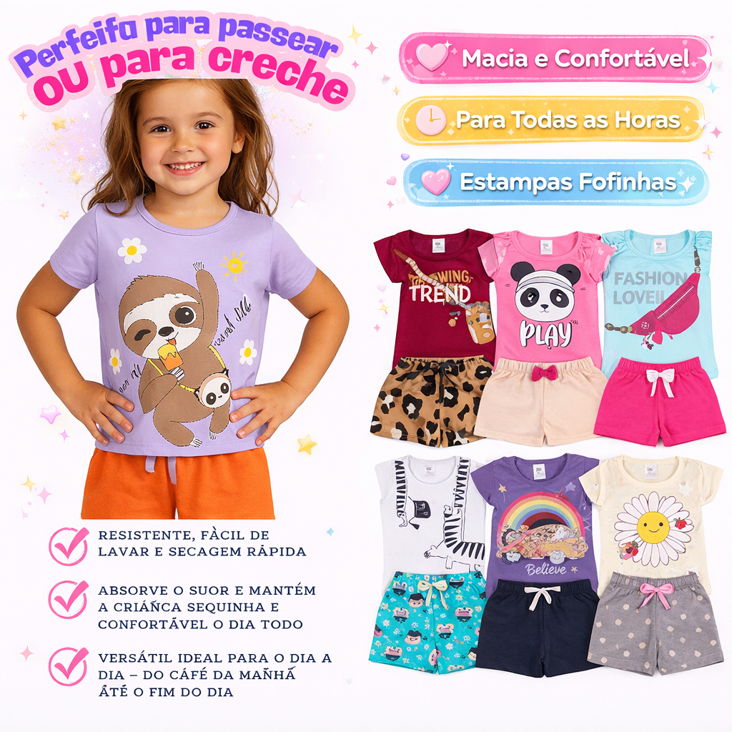 Kit 14 Conjunto Infantil Menina Camiseta Verão Algodão Roupa de Bebê Criança