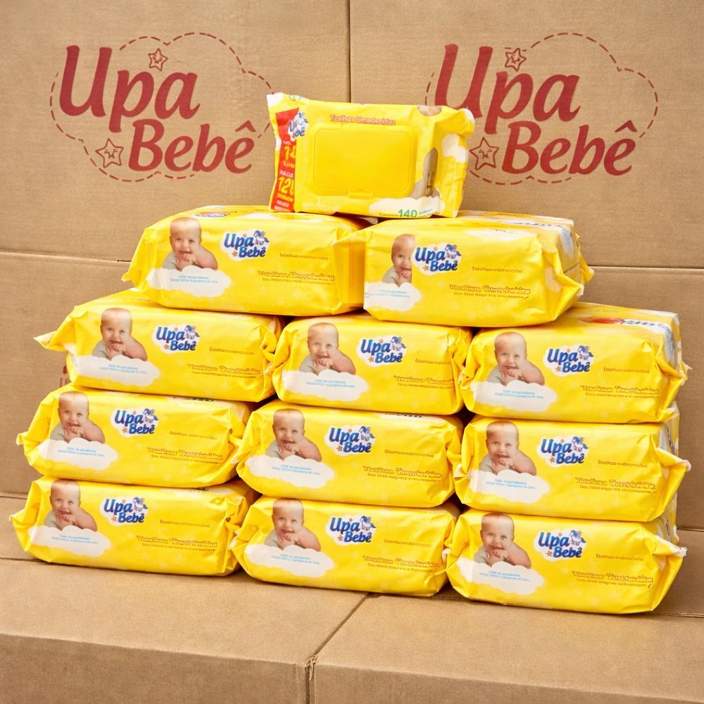 Kit 1680 lenços/Toalhas umedecidas Upa bebe caixa com 12 pacotes 140 und cada