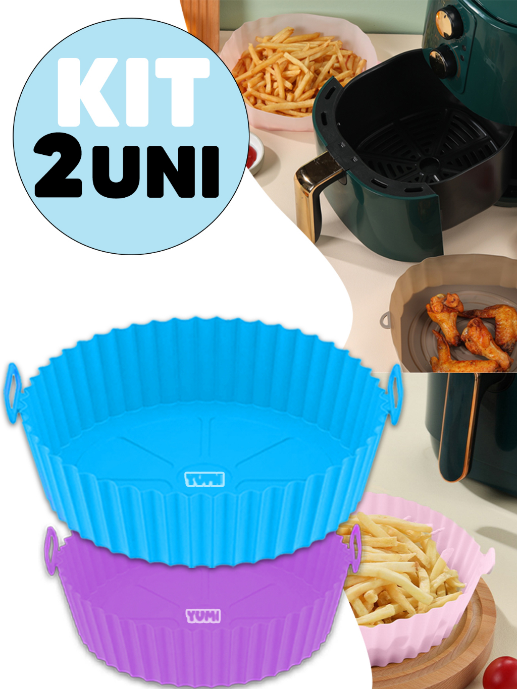 Kit 2 A Melhor Forma Assadeira Para Fritadeira Air Fryer Em Silicone Flexível Lavável Grossa 80g + Resistente + Durável