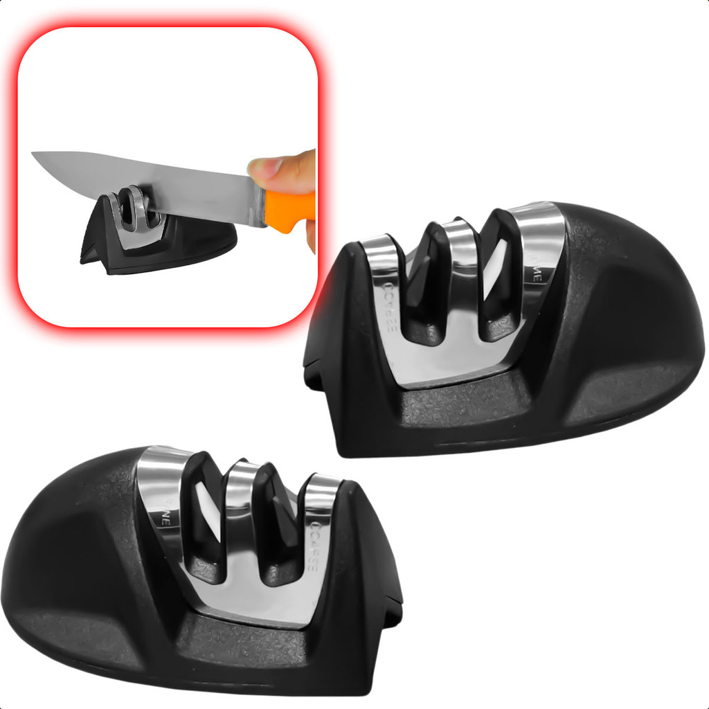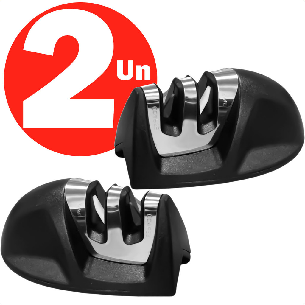Kit 2 Afiador Amolador de Facas em Aço Inox com Base Emborrachada 2 Borda Profissional