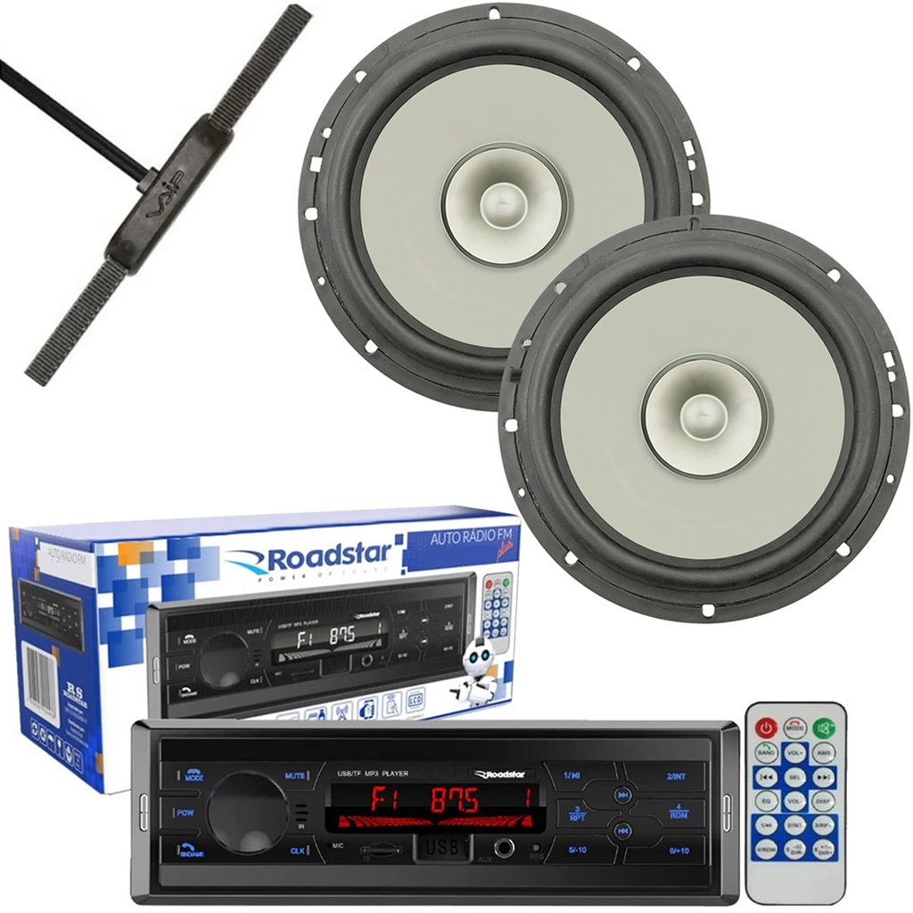 Kit 2 Auto Falante 6 Pol + Radio Carro Bluetooth + Antena Fm