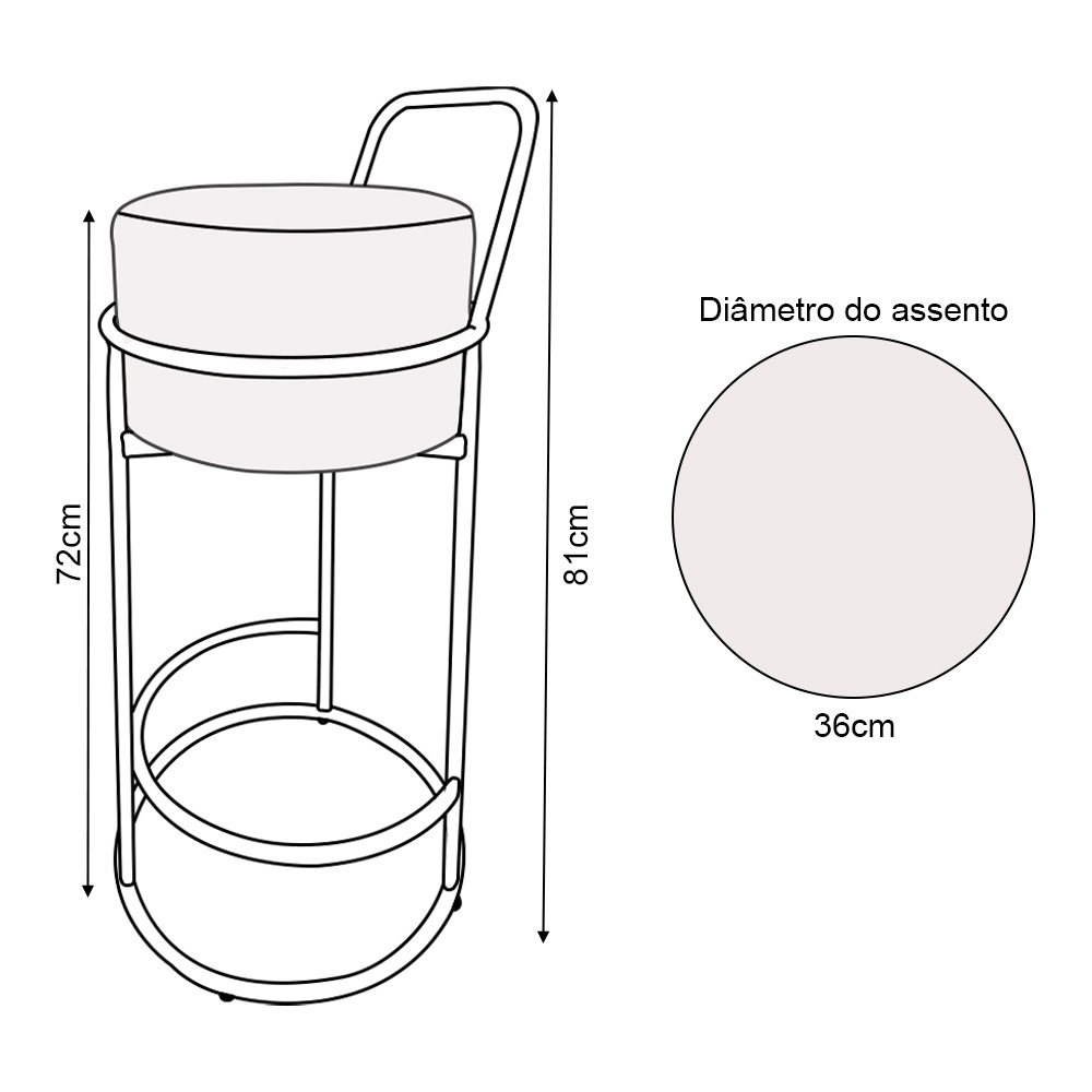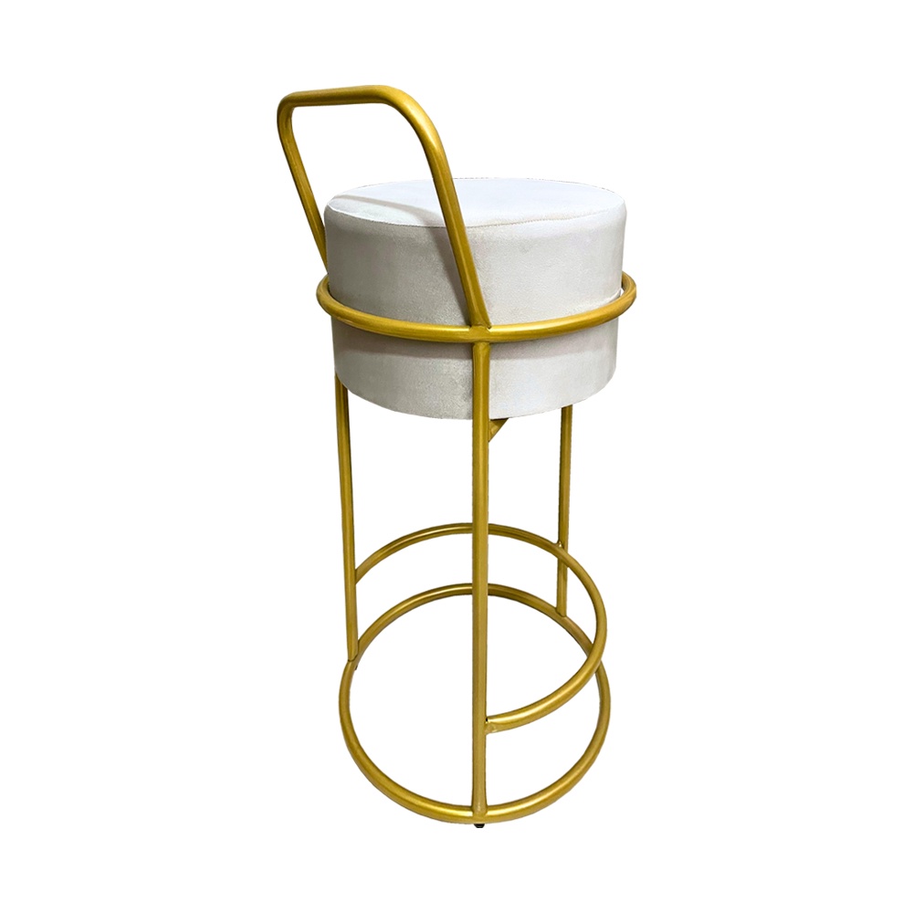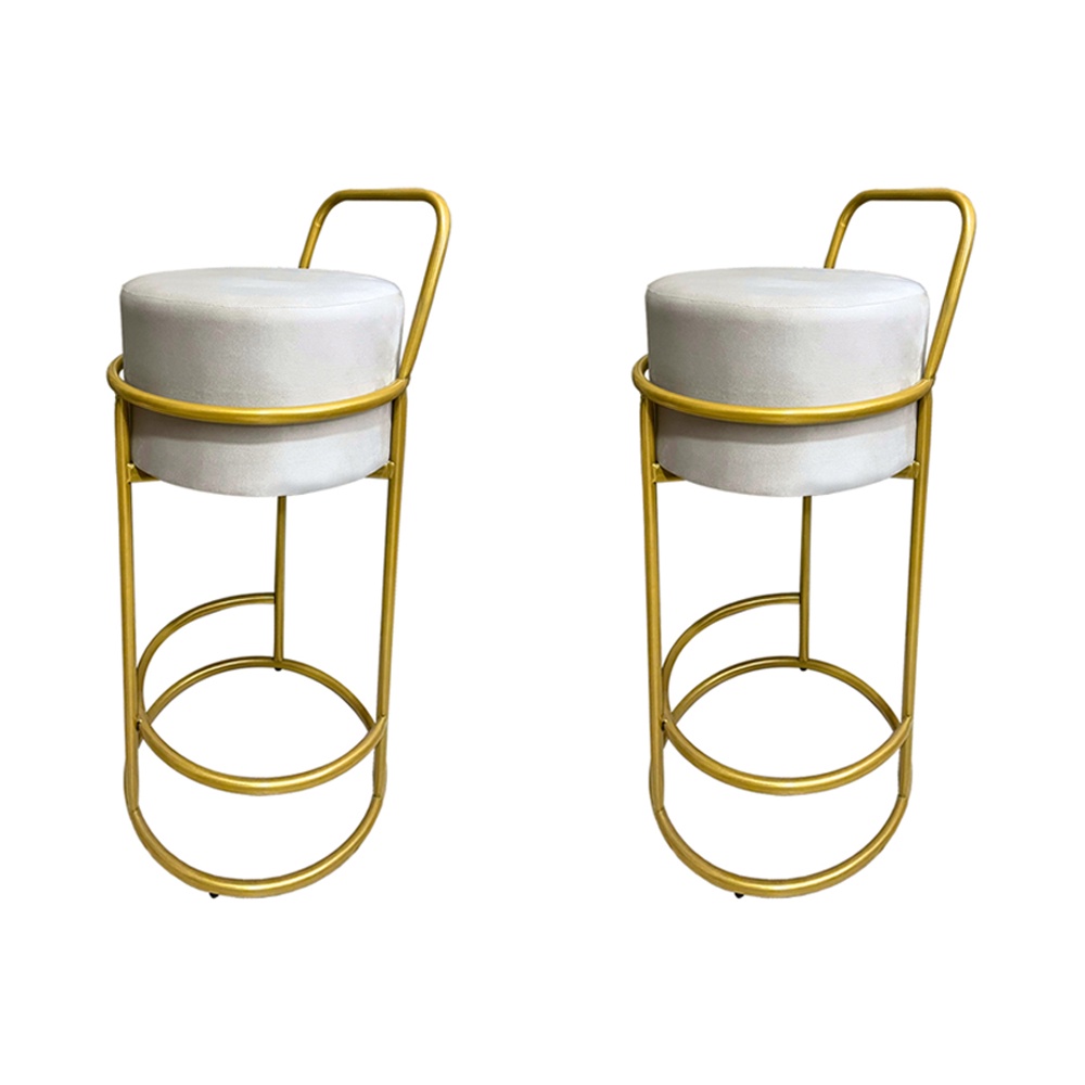 Kit 2 Banquetas Alta Redonda Base Dourada Veludo - Bege