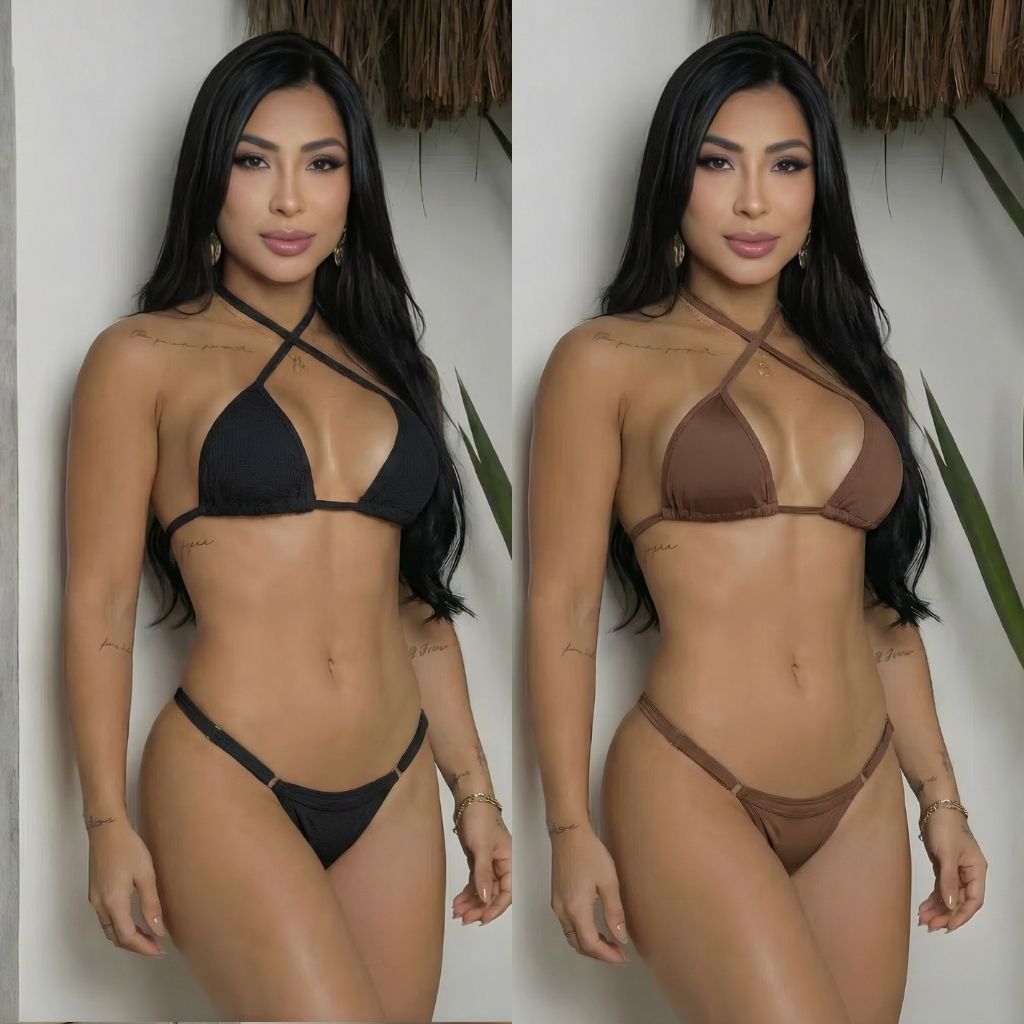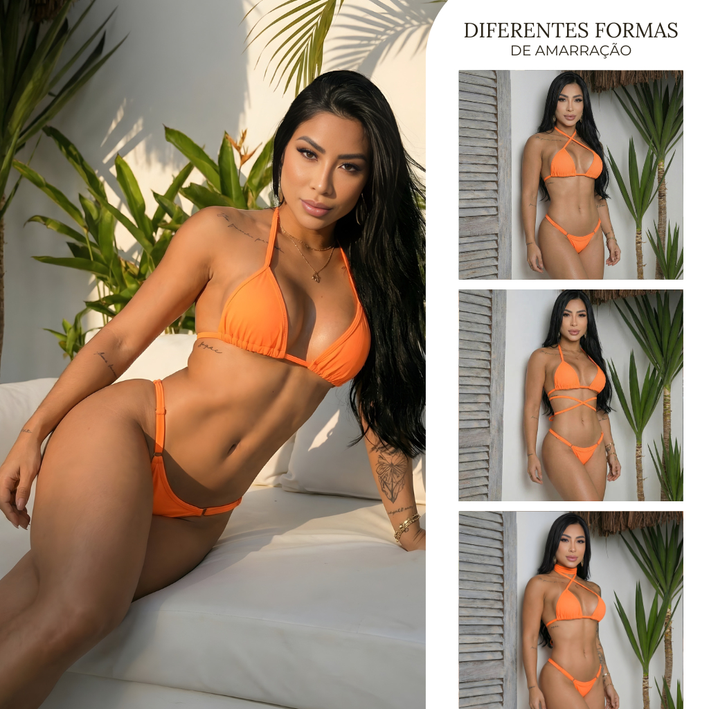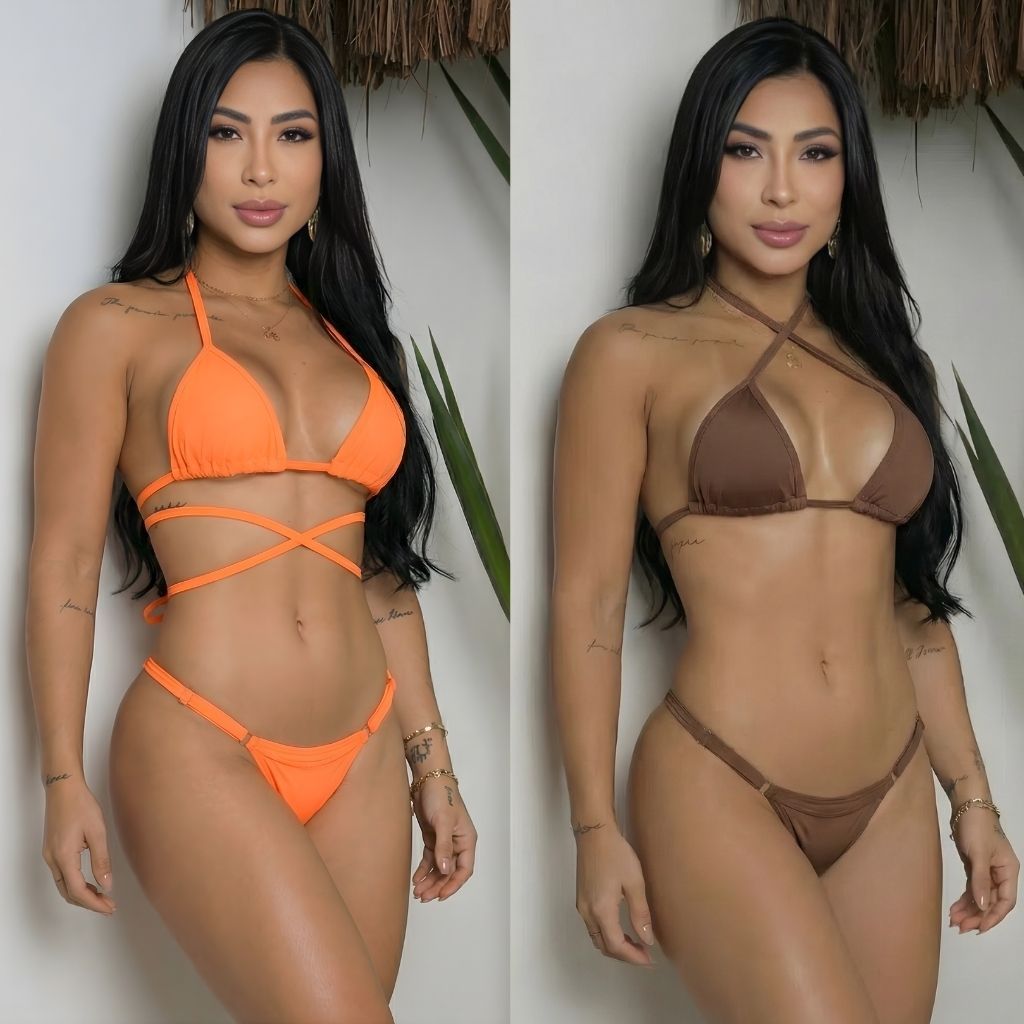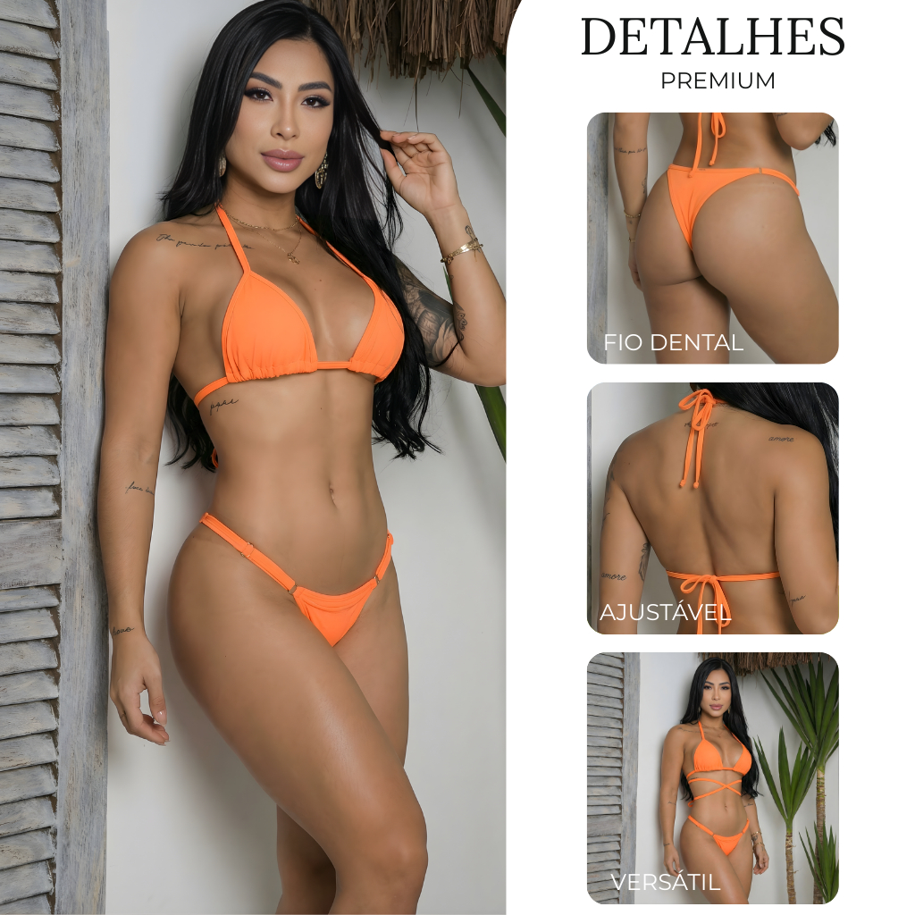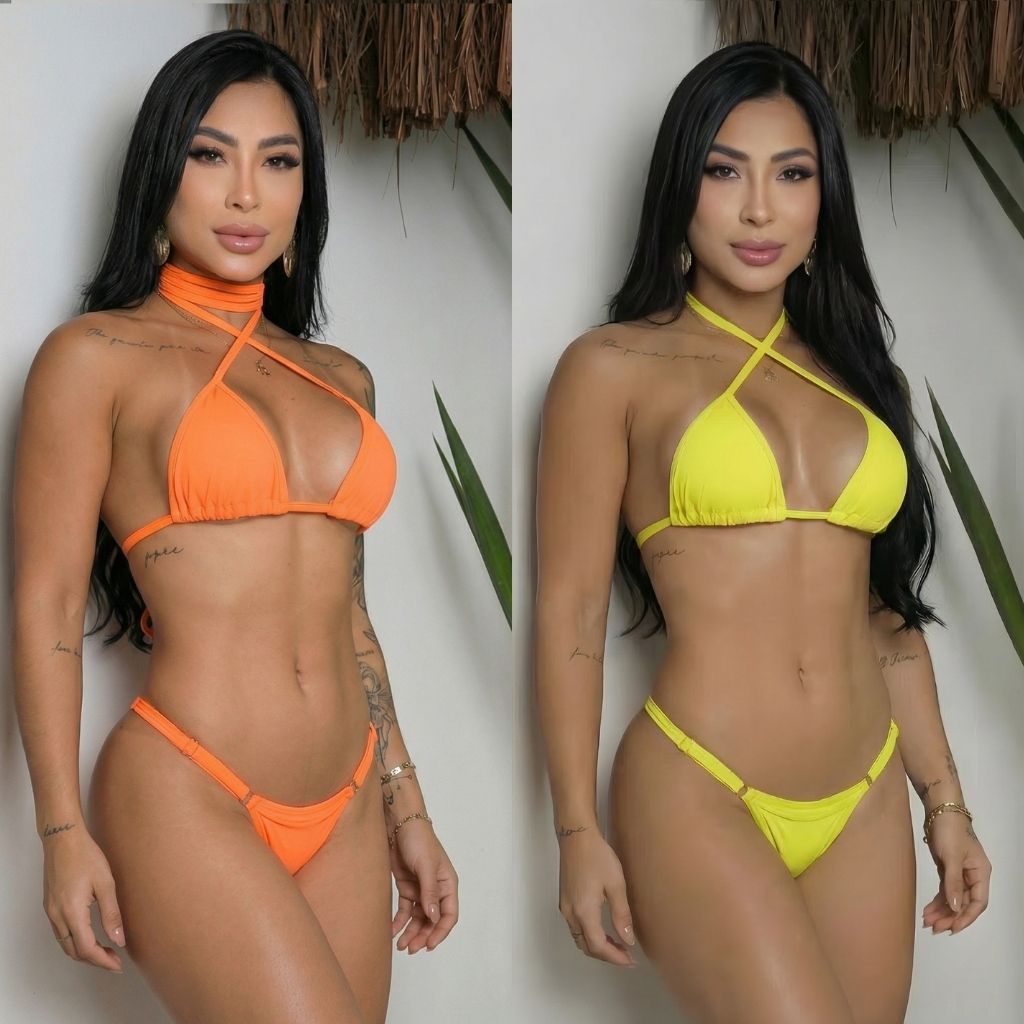 Kit 2 Biquíni Fita Cortininha Marquinha Fio Dental Sem Bojo Com Fio Duplo Para Regulagem