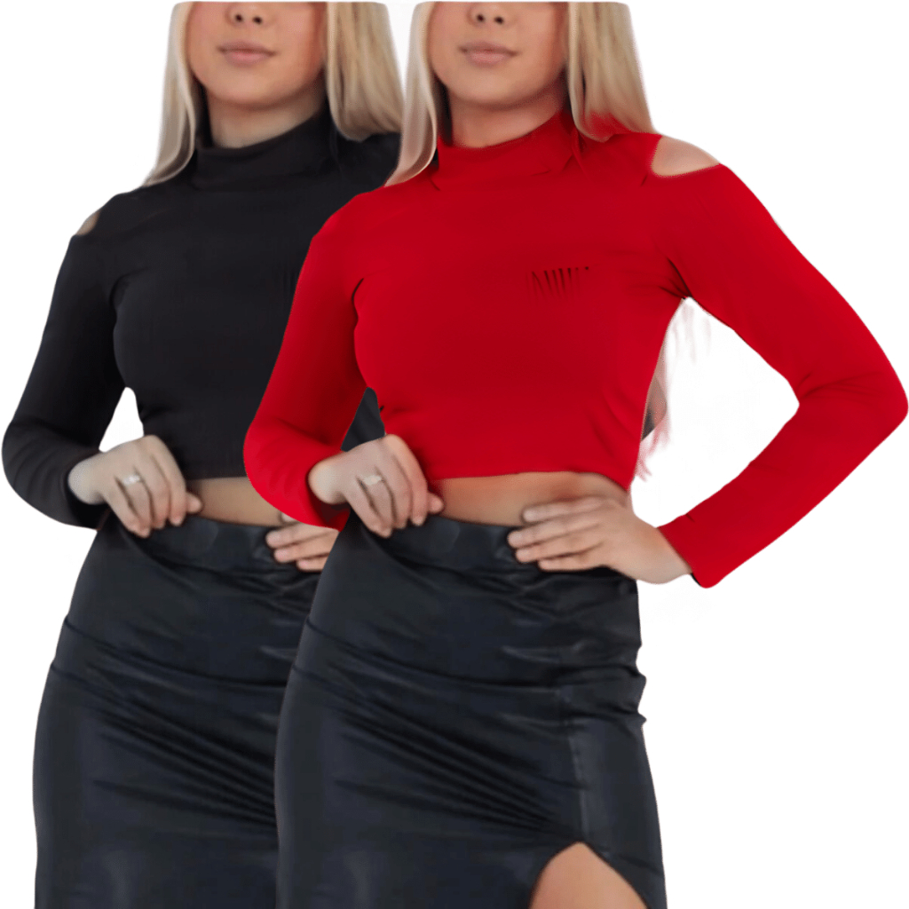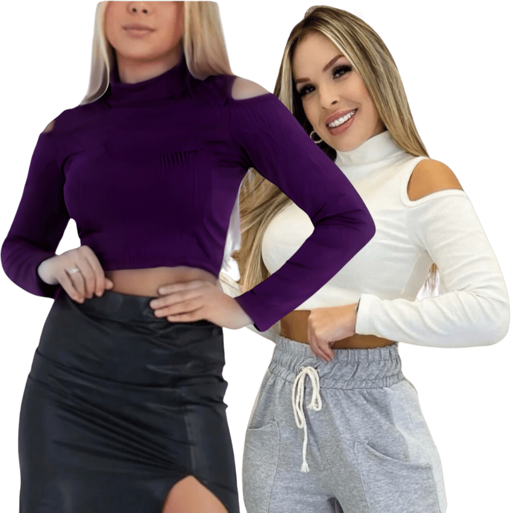 Kit Com 2 Blusa Feminina Cropped Gola Alta Manga Longa