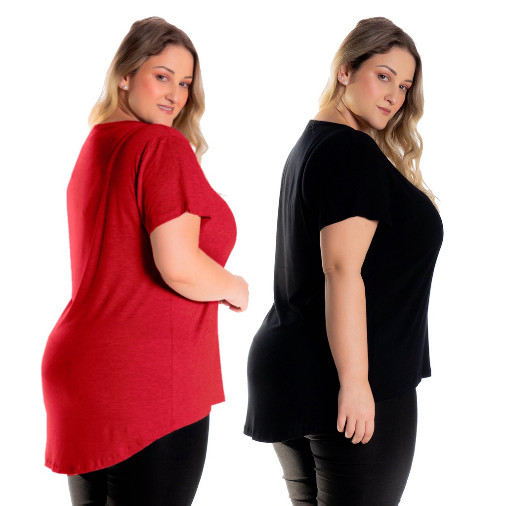 Kit 2 Blusas Plus Size Comprida Feminina Academia Treino Confortável Viscose Básica Dia a Dia