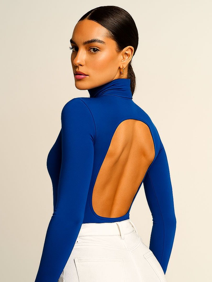 Kit 2 Body Feminino Paris Costas Nua Aberta Forrado Manga longa Comprida Gola Alta Estilosa Elegante Gringa