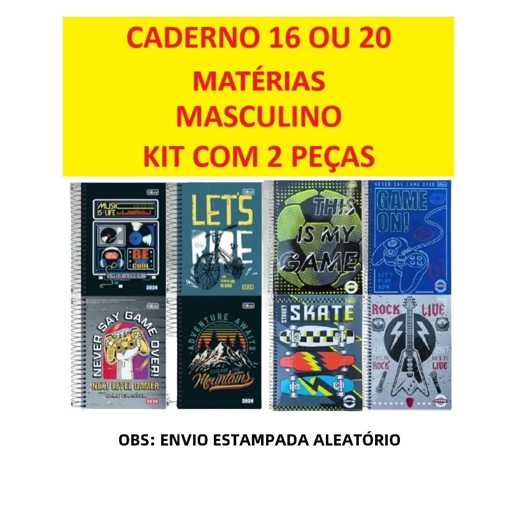 Kit 2 Cadernos Masculino E Feminino 16 E 20 Matérias 256 Ou 320 Folhas Tilibra Espiral Capa Dura
