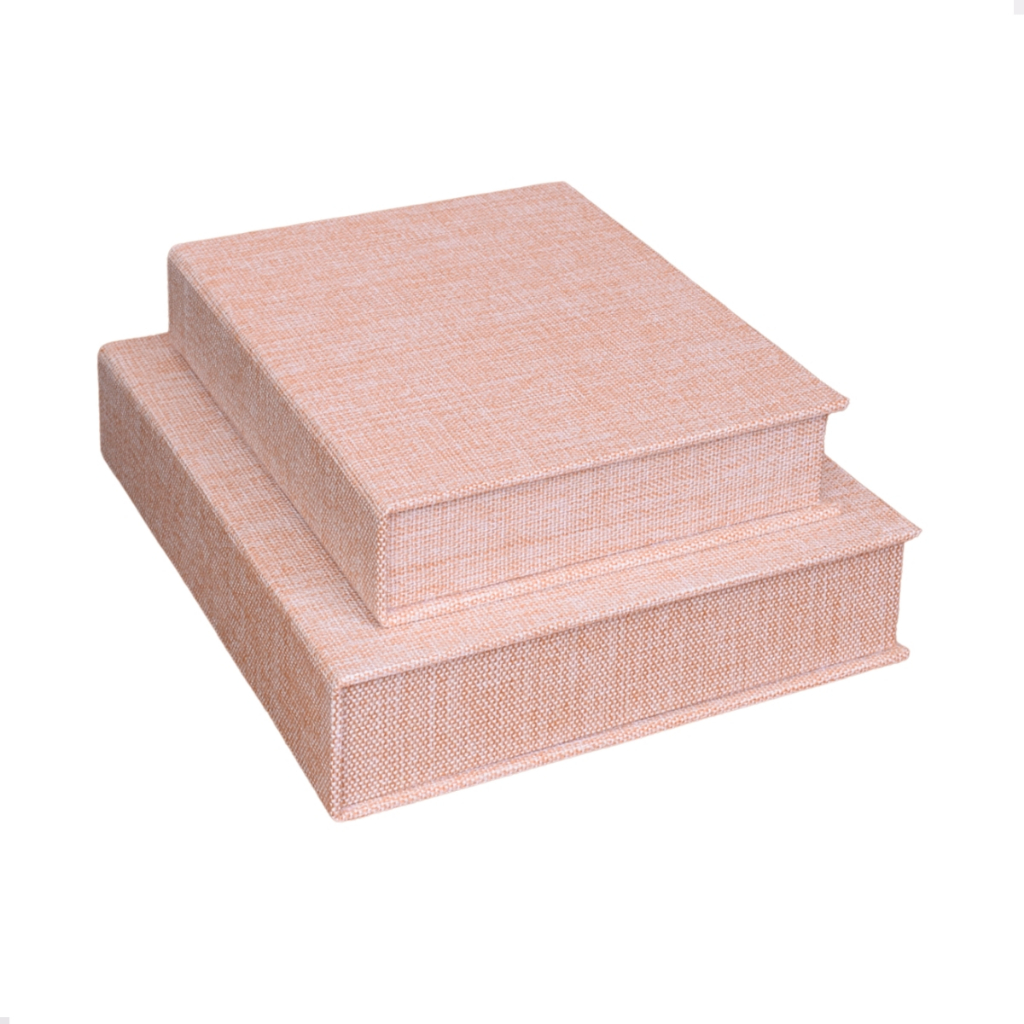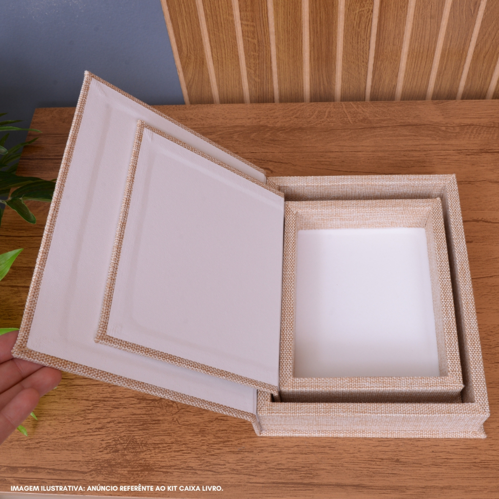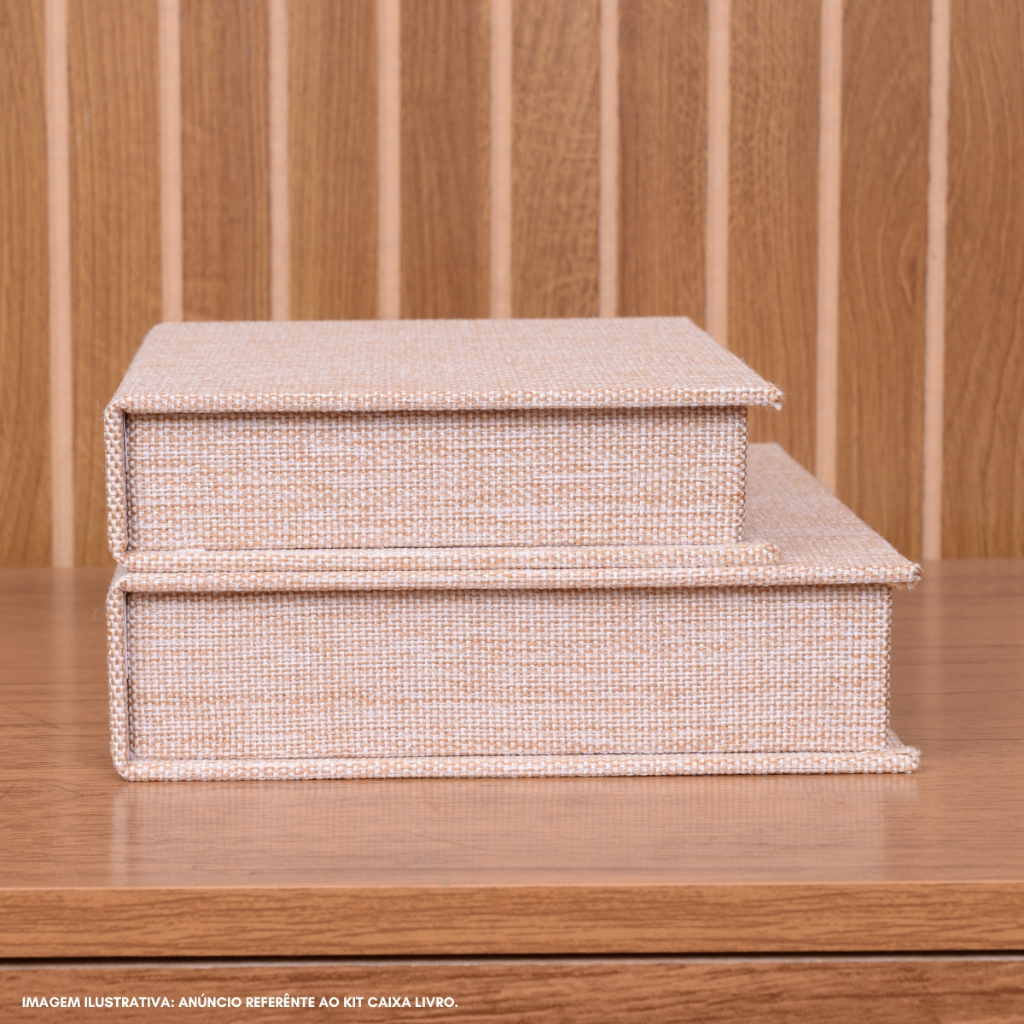 Kit 2 Caixa Livro Falso P M MDF TECIDO JUTA BEGE Decorativa Porta Objeto Elegante