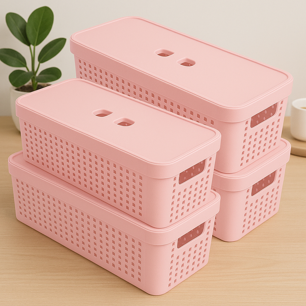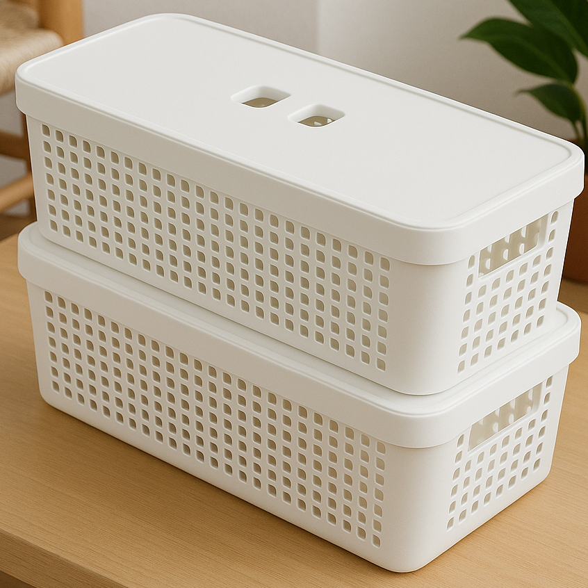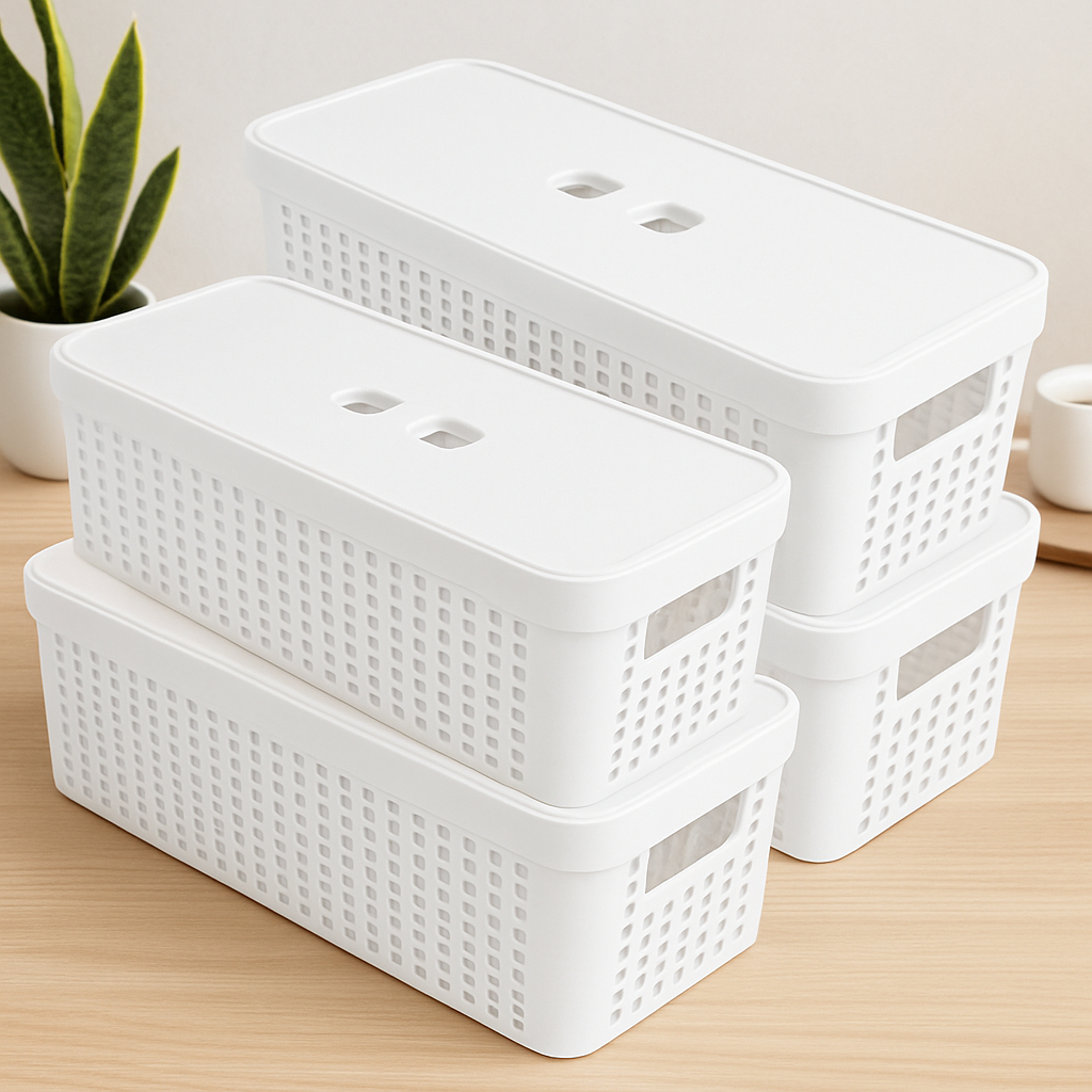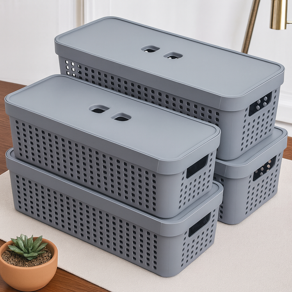 Kit 2 Caixa Organizadora com Tampa 3,6 Litros Cesto Grande em Plástico Resistente