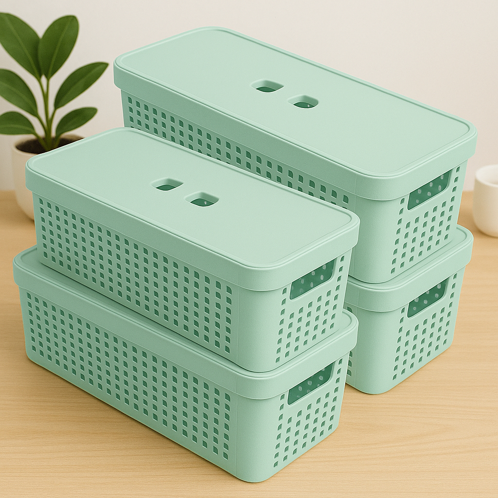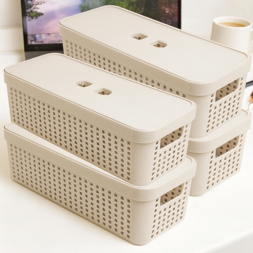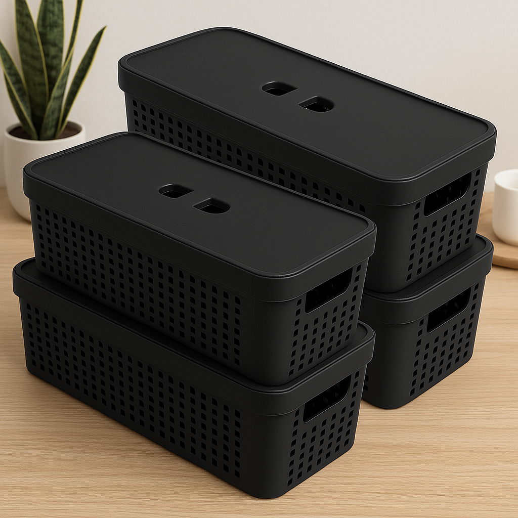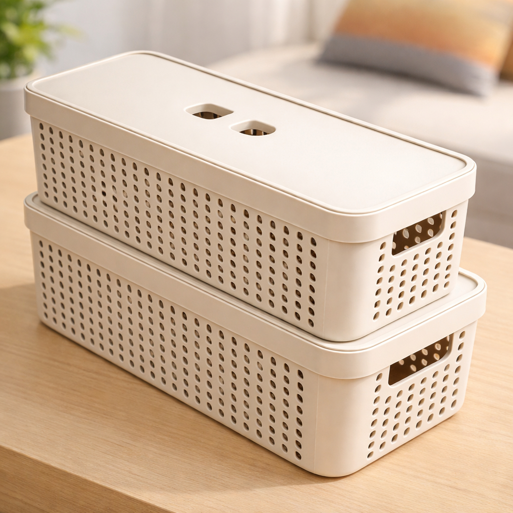 Kit 2 Caixa Organizadora com Tampa 3,6 Litros Cesto Grande em Plástico Resistente