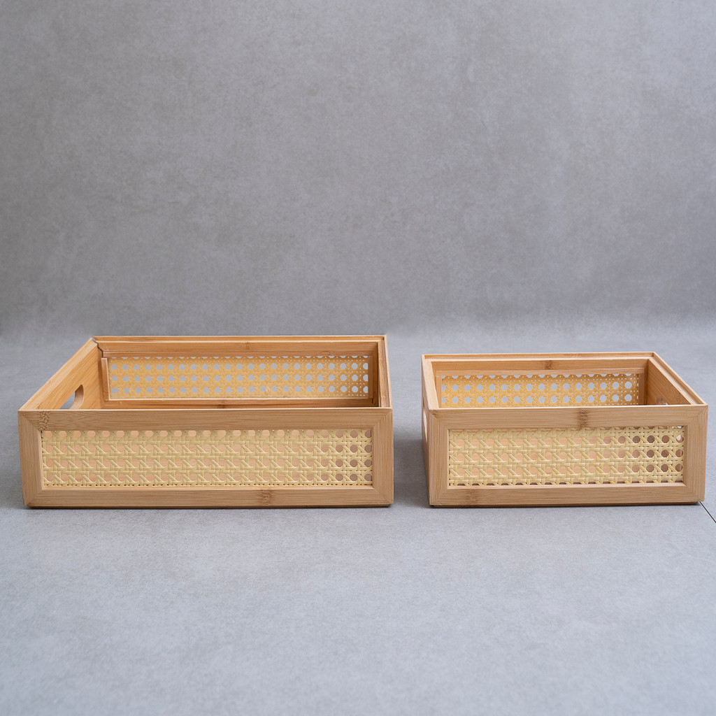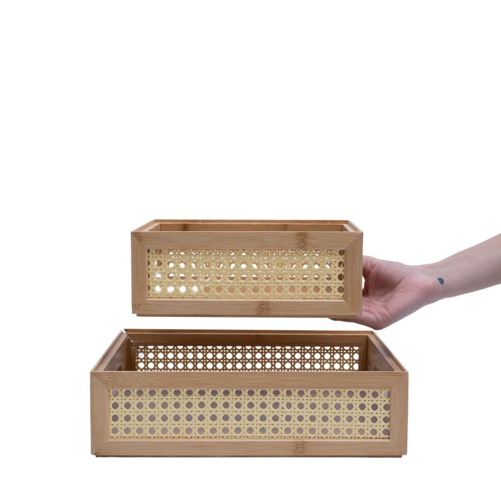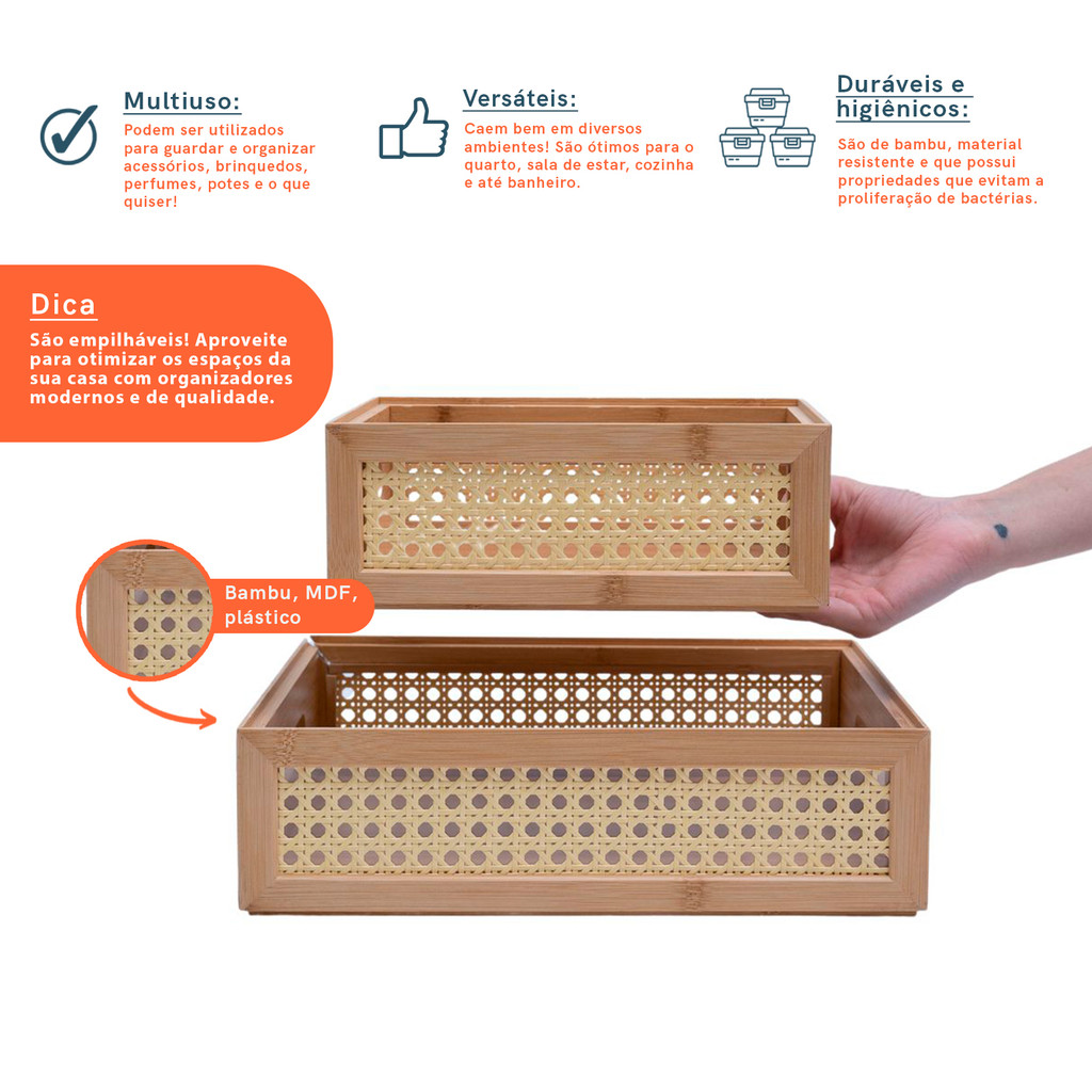 Kit 2 Caixas Organizadoras Bambu E Palhinha Oikos