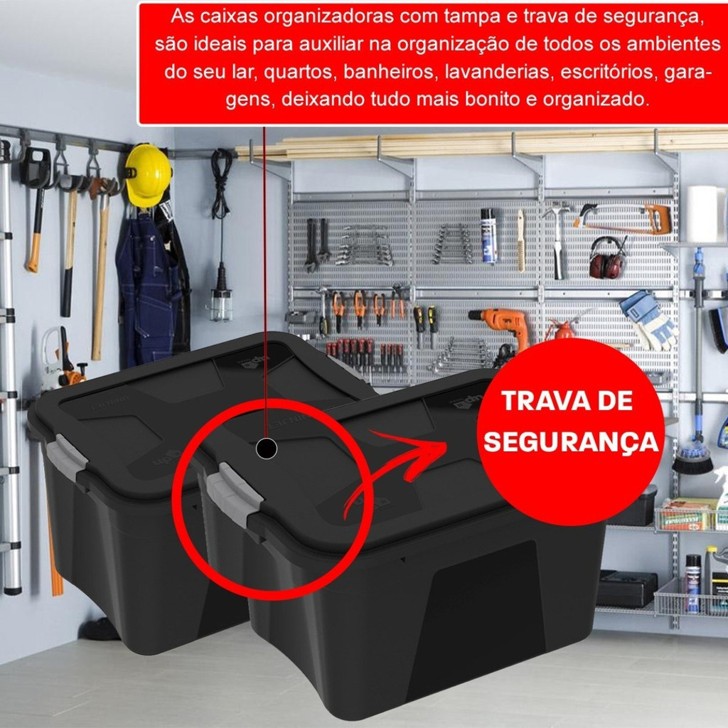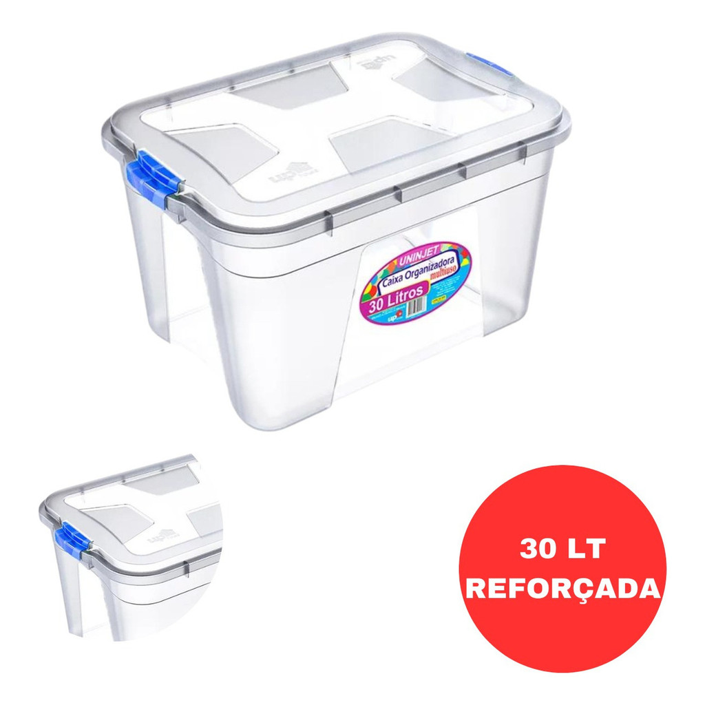 Kit 2 Caixas Plásticas 30 Litros com Tampa Empilhável Organização Multiuso Quarto Cozinha Lavanderia
