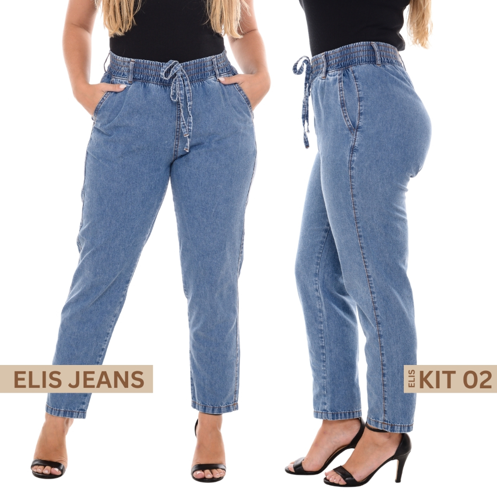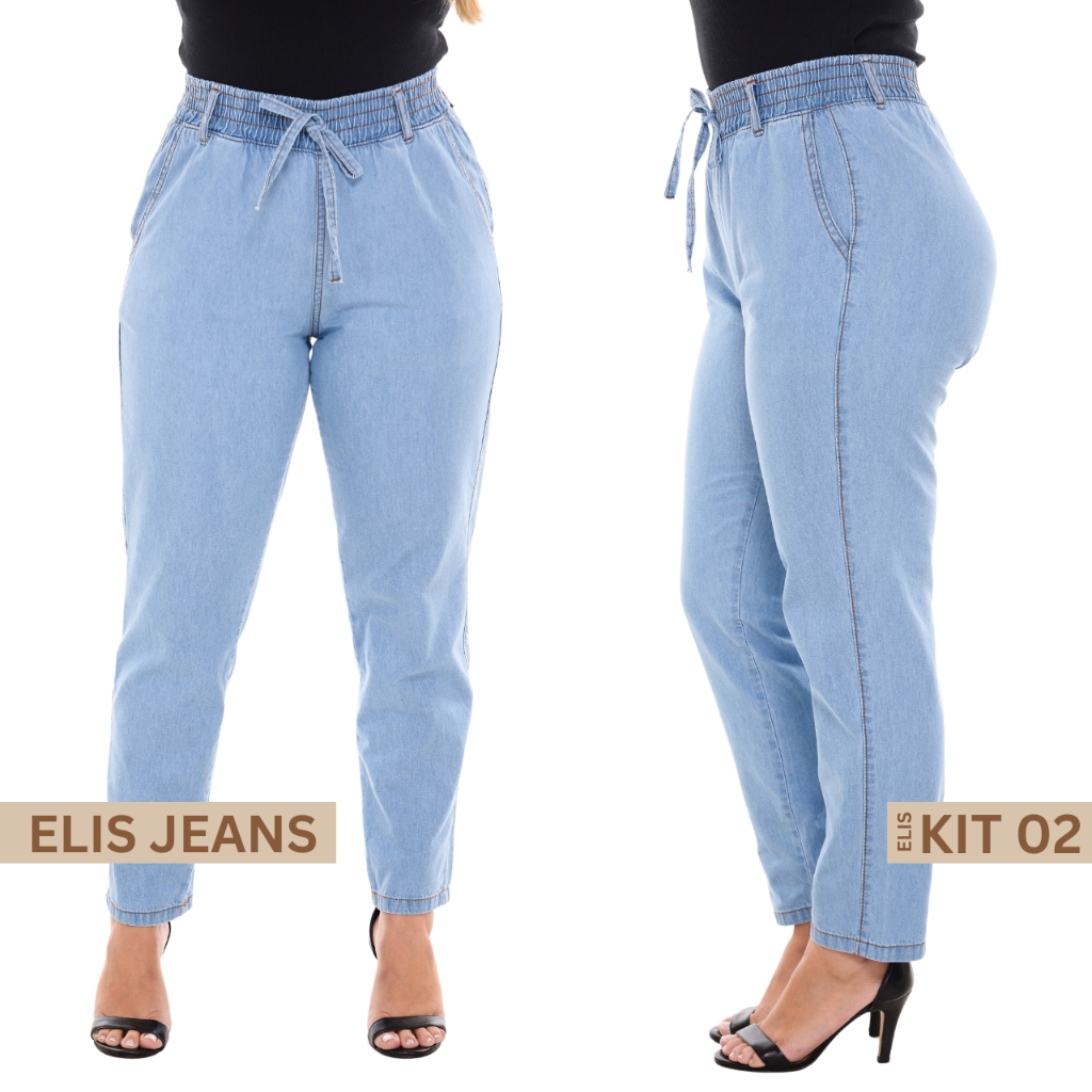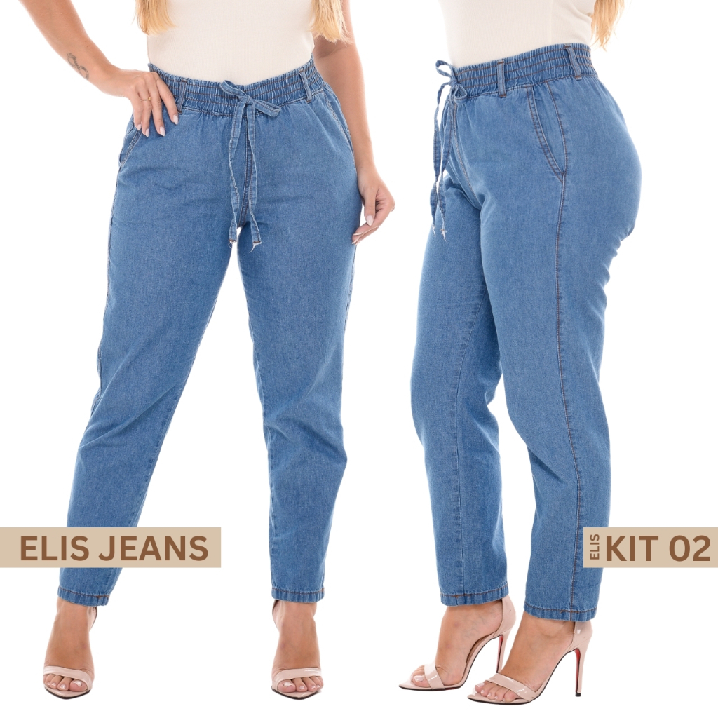 Kit 2 Calça Jeans Feminina Capri Tecido Leve Cintura Alta
