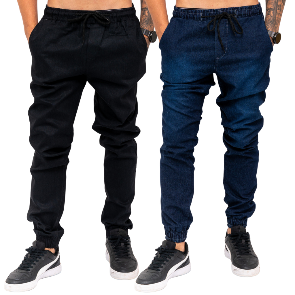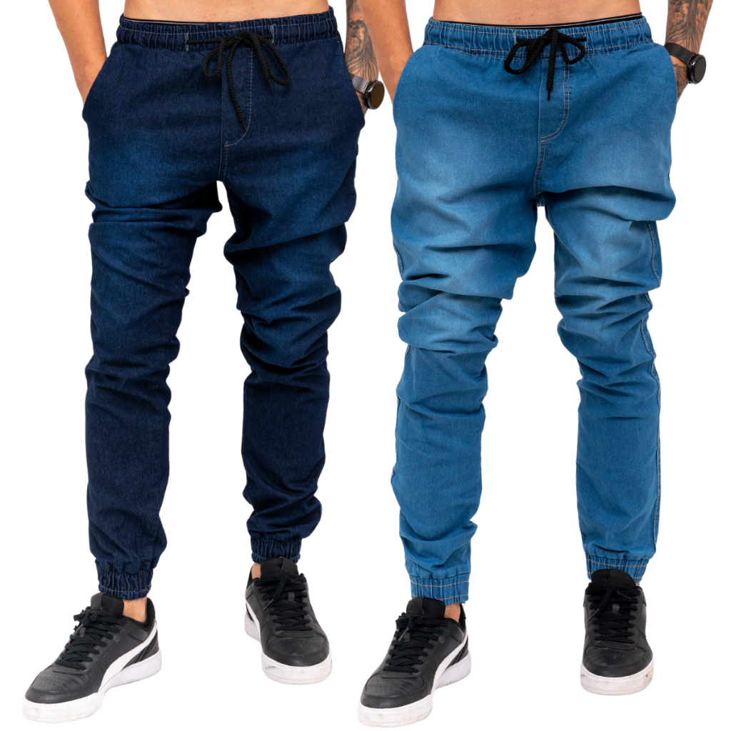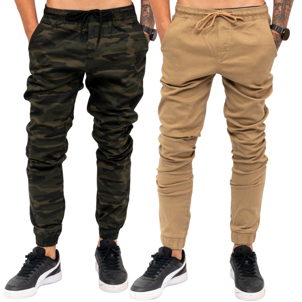 Kit 2 Calças Jeans Camuflada Masculina Jogger C/ Punho Lycra