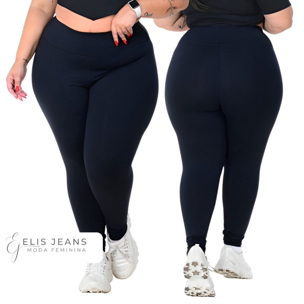 Kit 2 Calças Legging Plus Size Cintura Alta Leg Feminina Grossa Zero Transparência