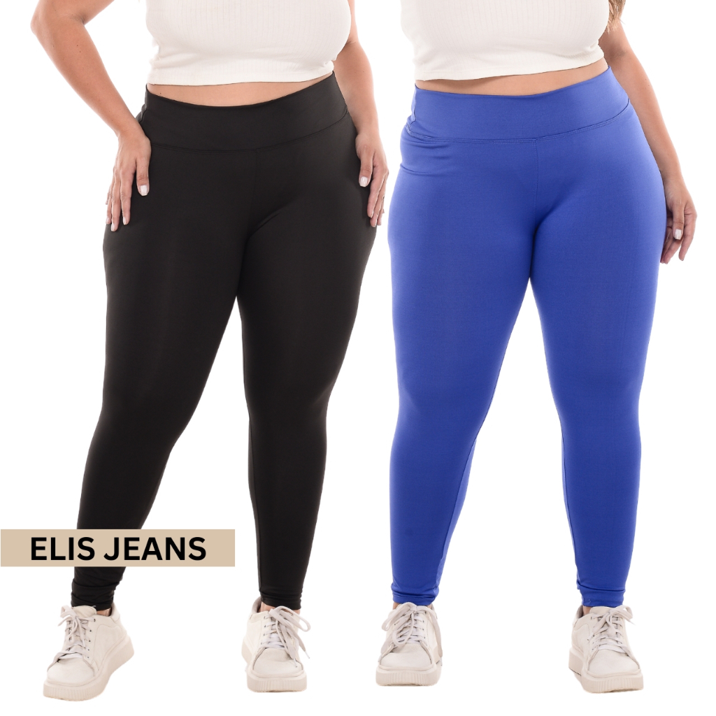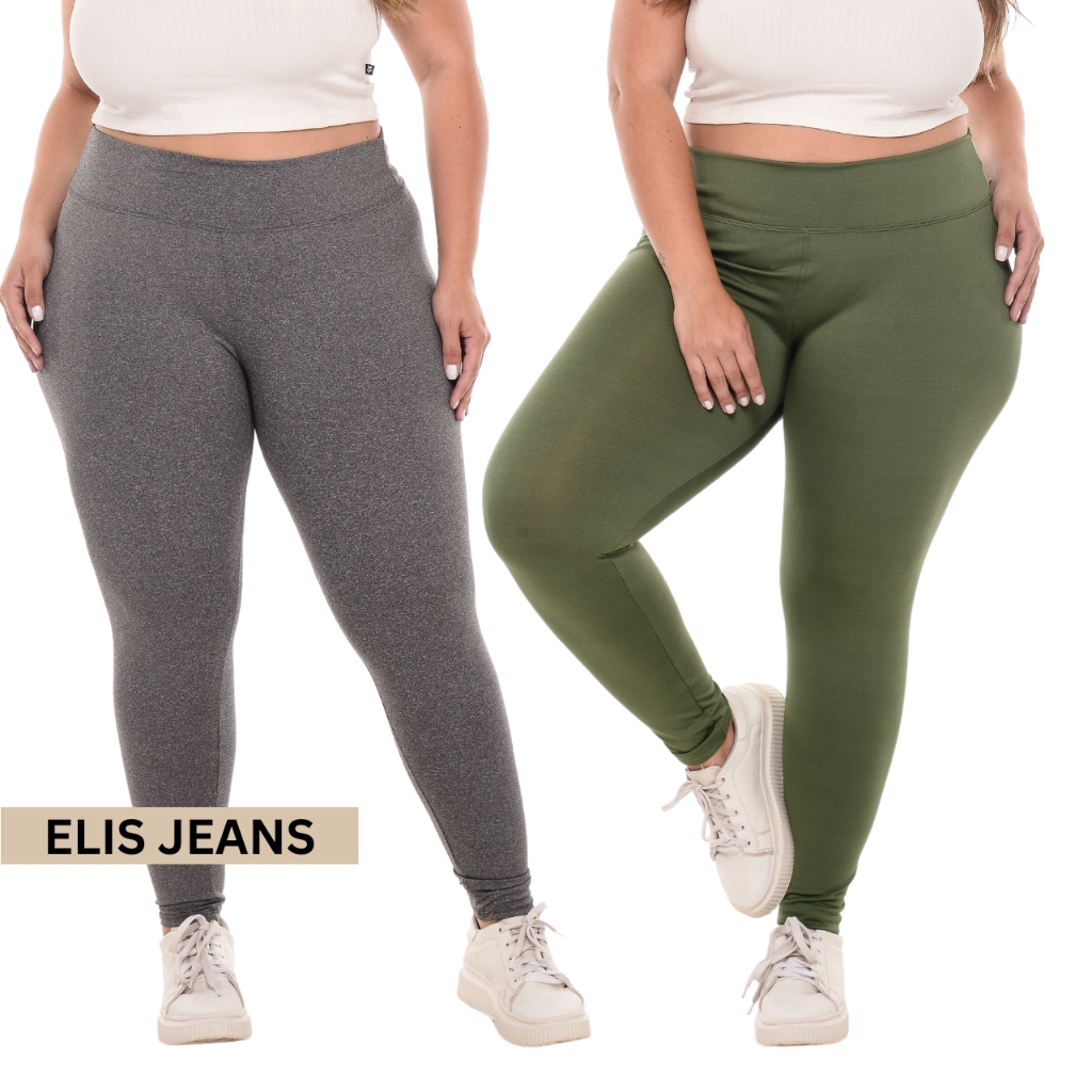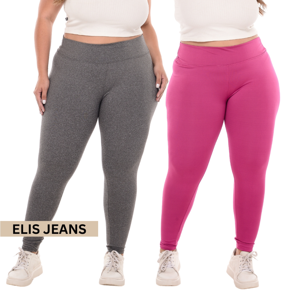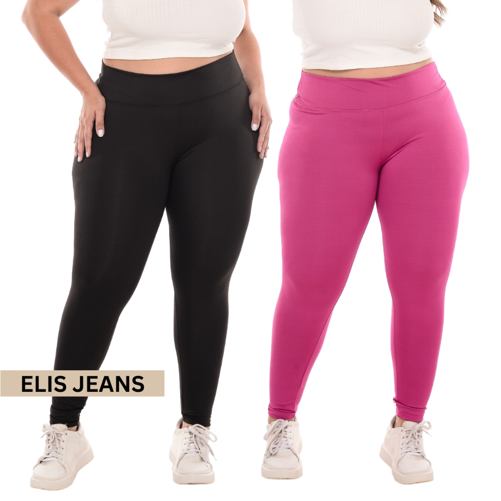 Kit 2 Calças Legging Plus Size Fitness Feminina Cintura Alta Leg Suplex Academia Zero Transparência