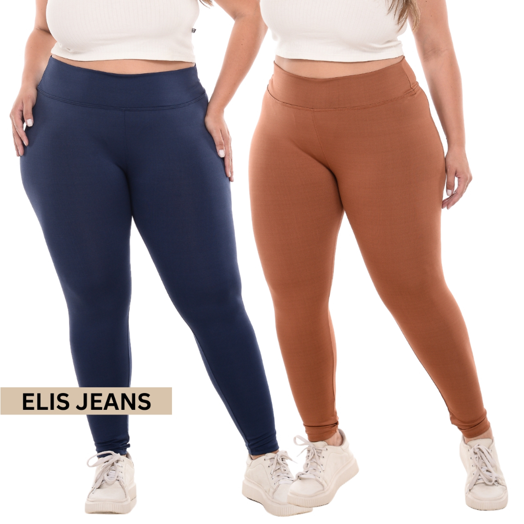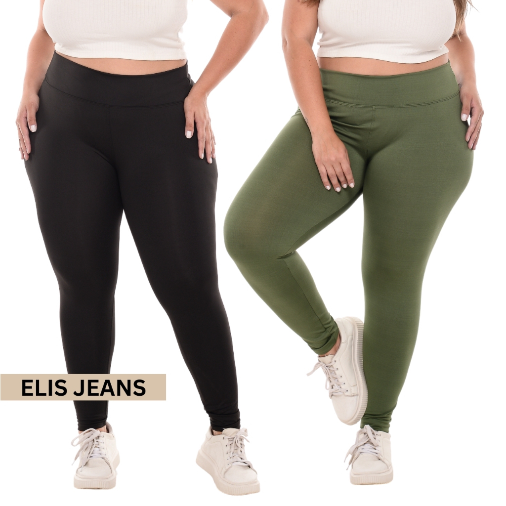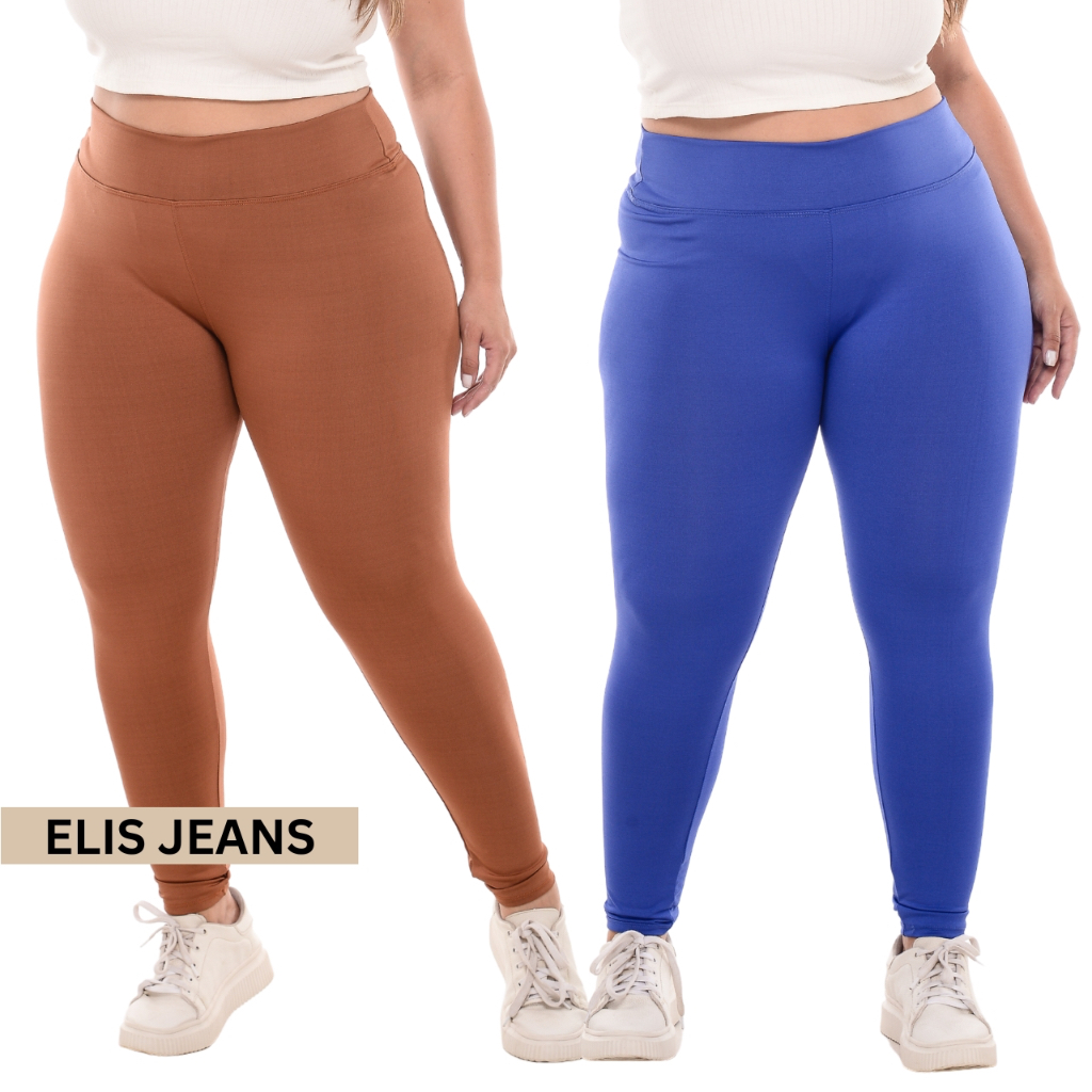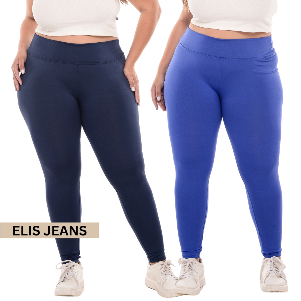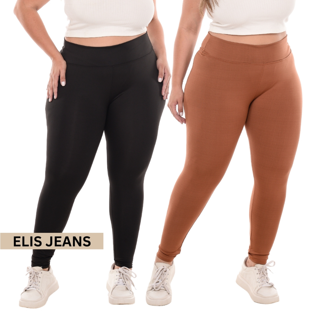Kit 2 Calças Legging Plus Size Fitness Feminina Cintura Alta Leg Suplex Academia Zero Transparência