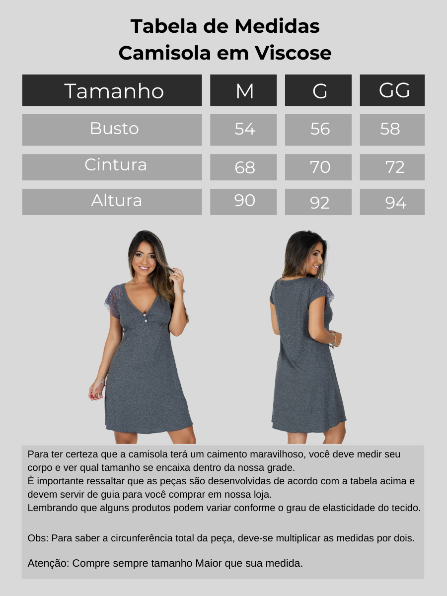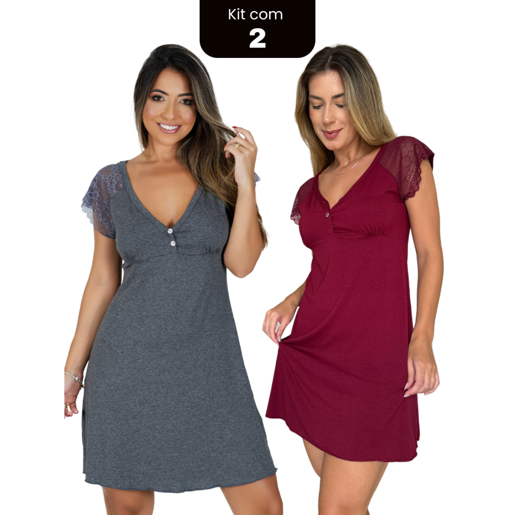 Kit 2 Camisola Feminina em Viscose com Botões Maternidade Pós Parto Amamentação Confortável