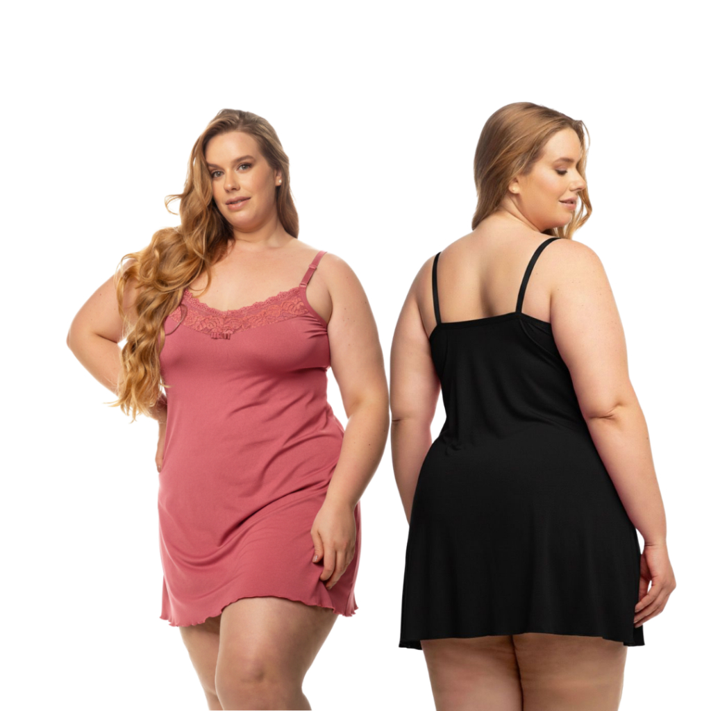 Kit 2 Camisolas Com Renda Plus Size Tecido Premium Alça Regulável Reforçadas Detalhada Em Renda