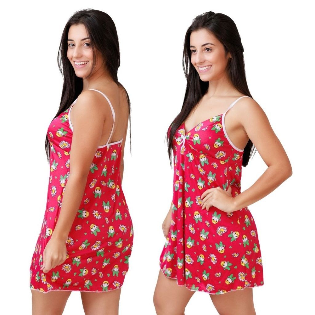 Kit 2 Camisolas Feminina de Poliéster Estampada Adulto Pijama Feminino Sexy Camisola Vestido Dormir