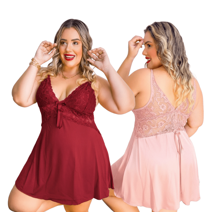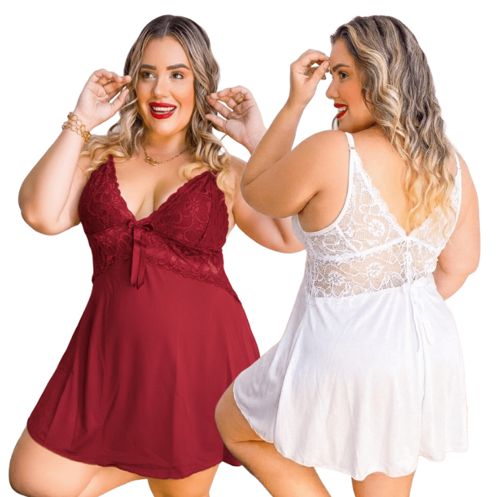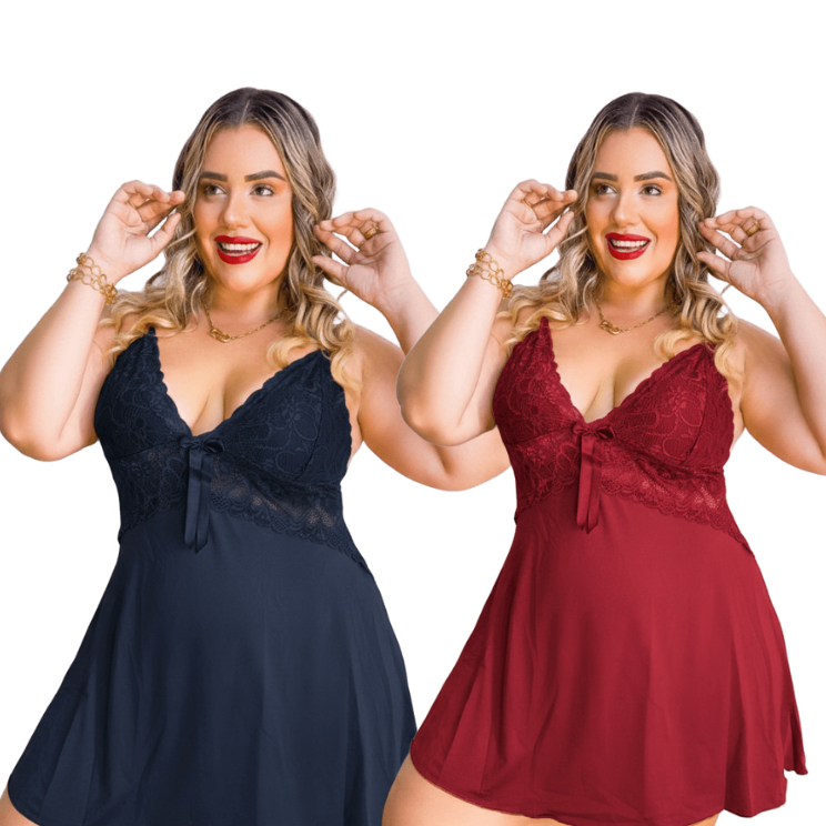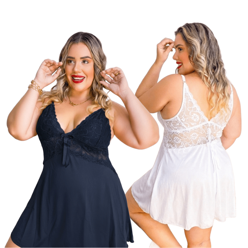 Kit 2 Camisolas Sexy Plus Size Laisa Rendada Sem Bojo Delicada e Confortável Linha Noite Luxo