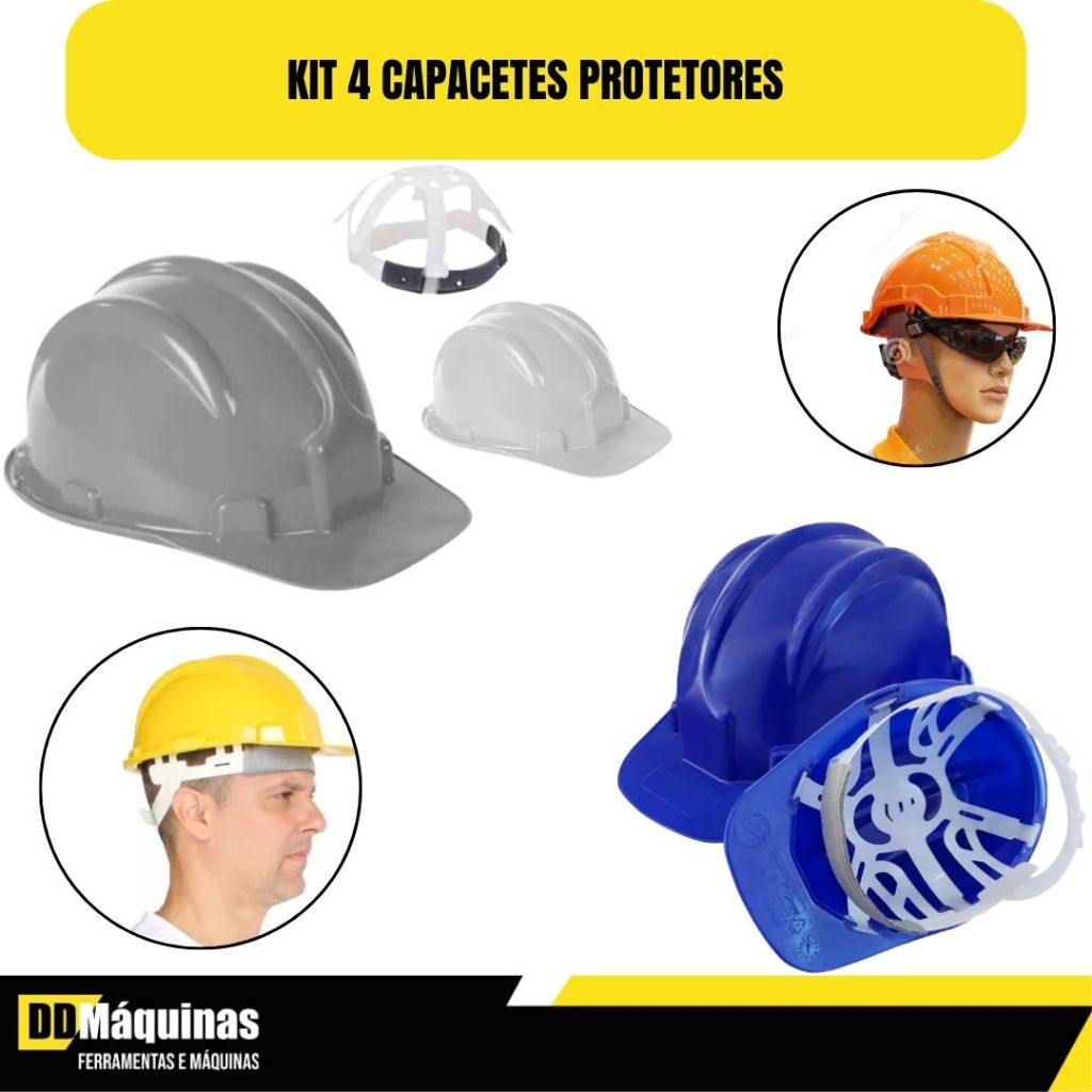Kit 2 Capacetes De Segurança Com Aba Frontal + 2 Capacetes de Segurança Com Carneira - Plastcor