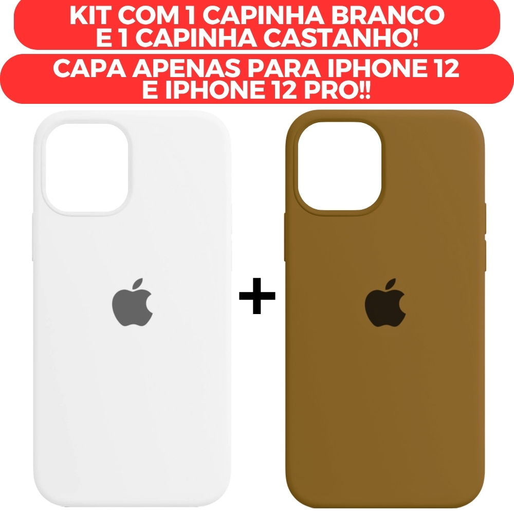 Kit 2 Capinhas de Iphone 12, Iphone 12Pro Branco e Castanho Fechada nas Laterais Case Aveludada e Silicone