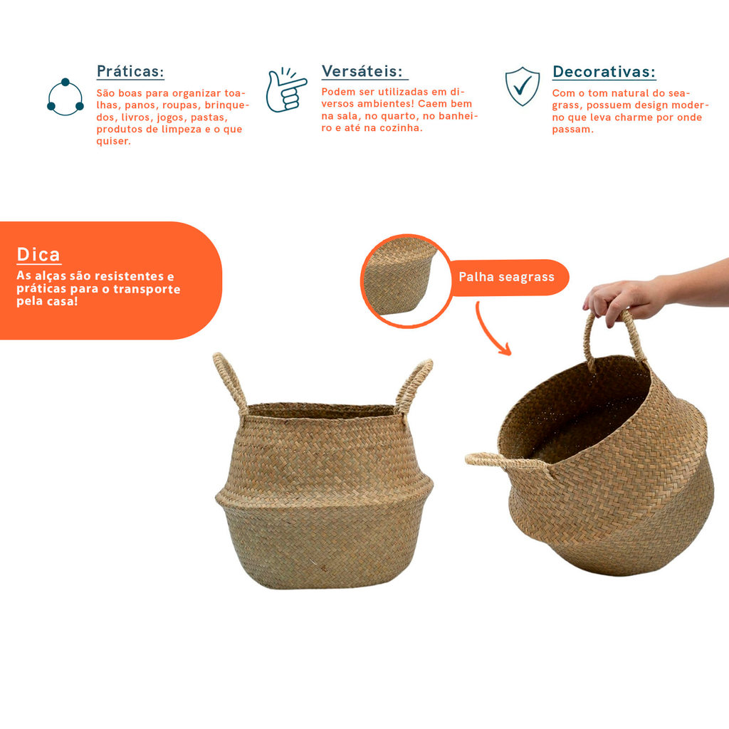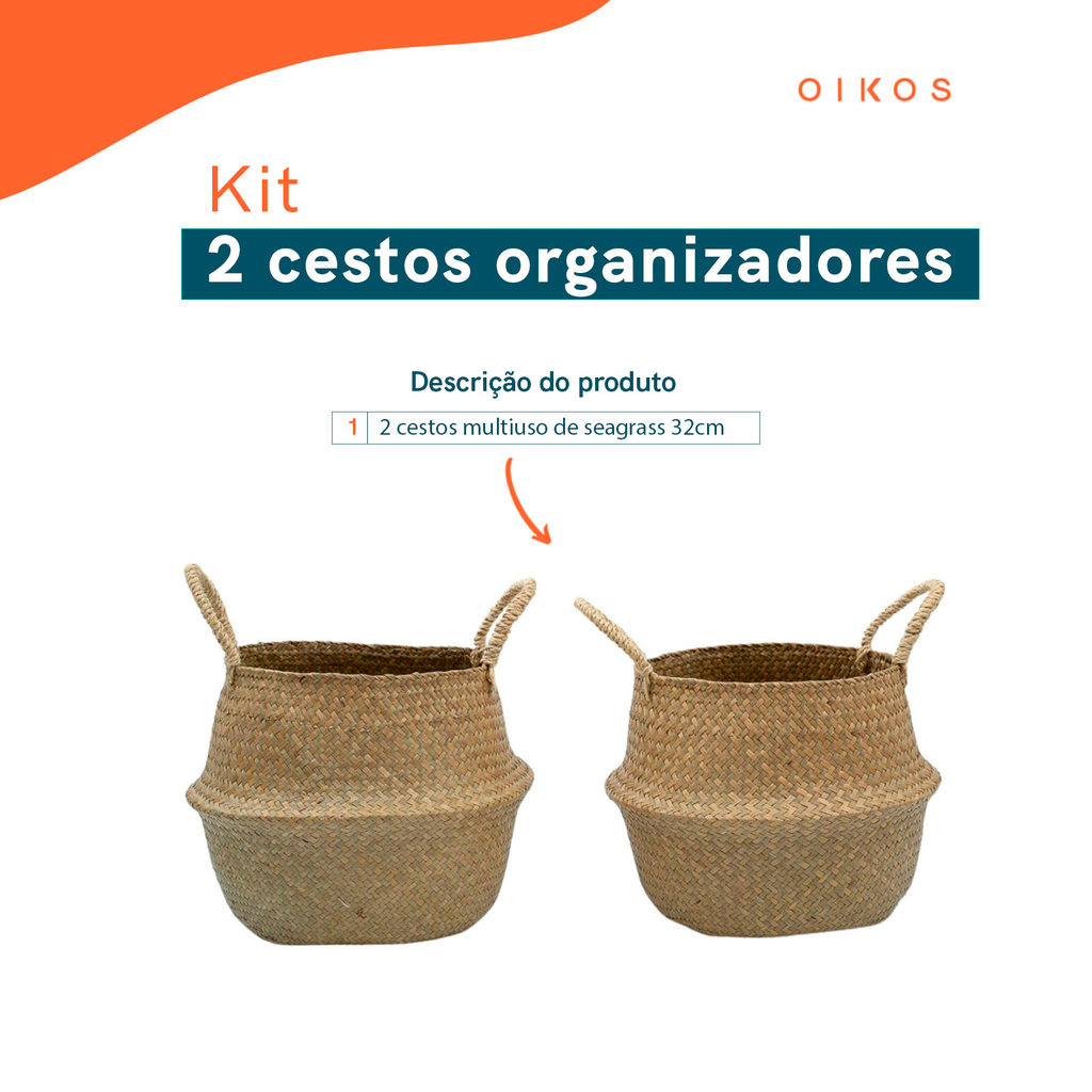 Kit 2 Cestos Organizadores Multiuso Decorativo Natural Seagrass - Oikos