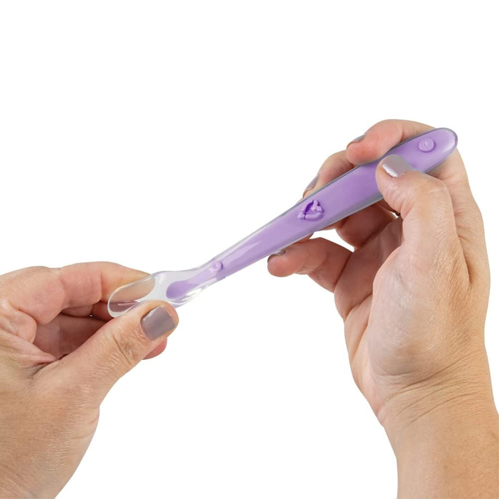 Kit 2 Colheres Silicone Buba Alimentação Bebê Rosa/Lilás