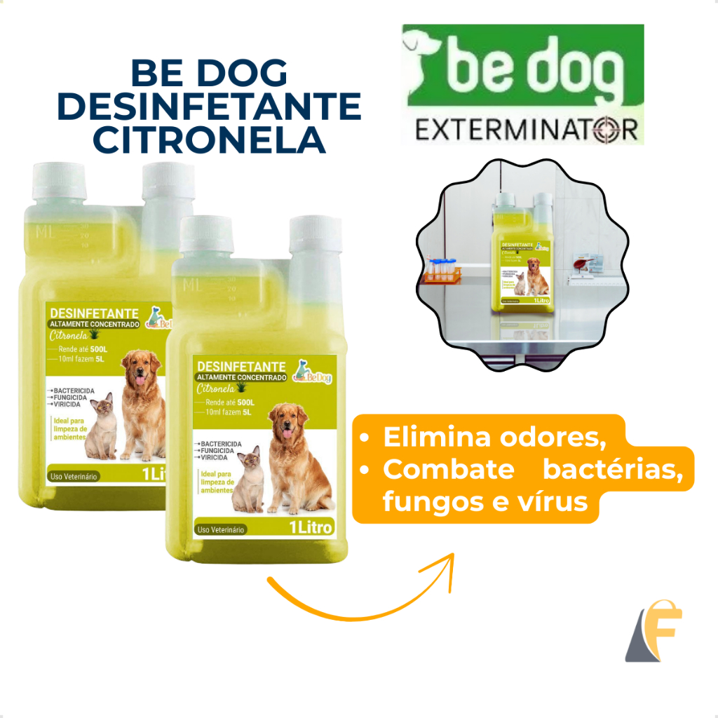 Kit 2 Desinfetante Concentrado Eliminador de Odores Citronela +15 Desinfetante Pet Be Dog