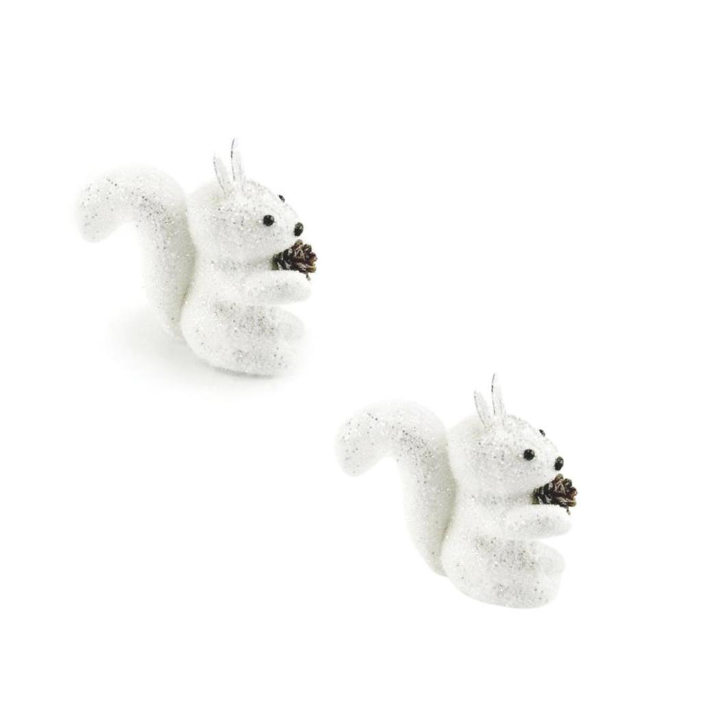 Kit 2 Enfeite de Natal Esquilo Branco Com Glitter 5.5x10.5cm