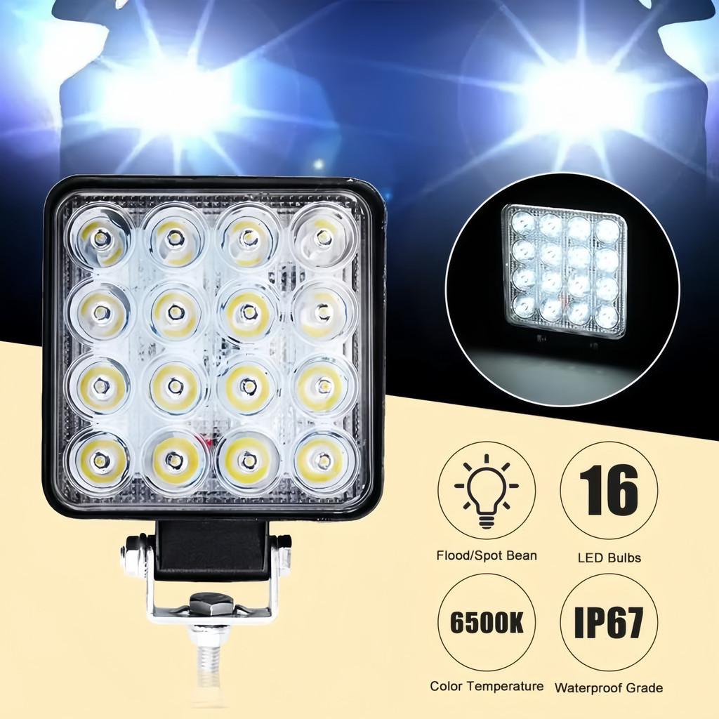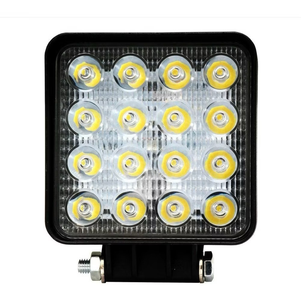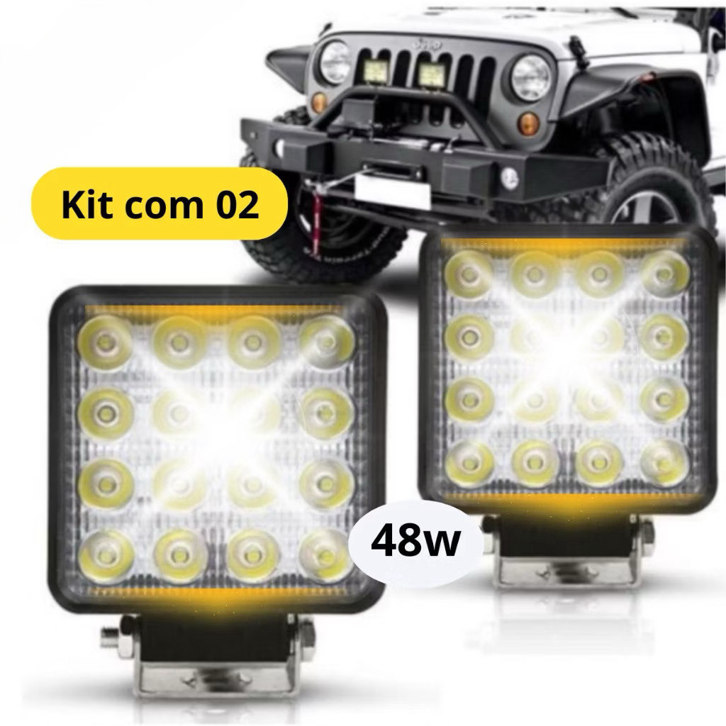 Kit 2 Farol De Milha Auxiliar 16 Leds 48w 12v/24v Quadrado Fino Off-Road 6000k Universal marisa