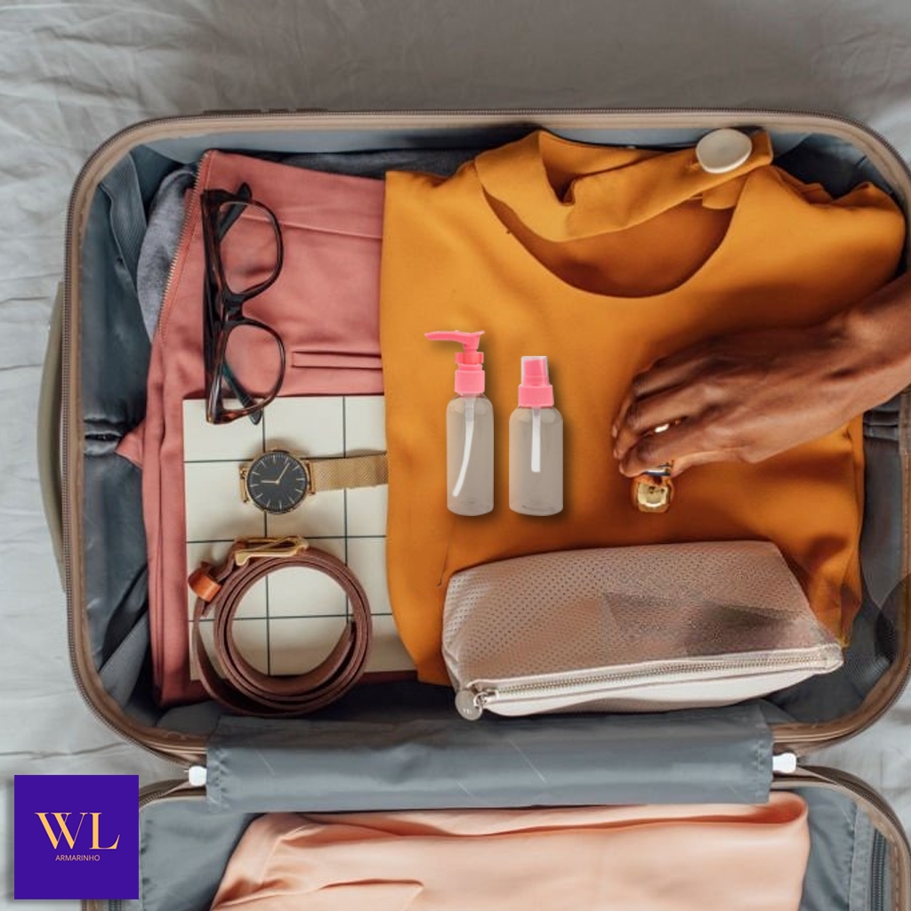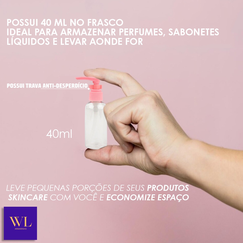 Kit 2 Frascos Viagem 40ml 30ml Portátil Transparente Perfume Spray Cosméticos Álcool Água Higiene Pessoal